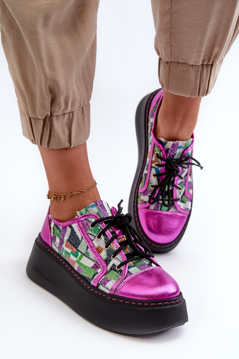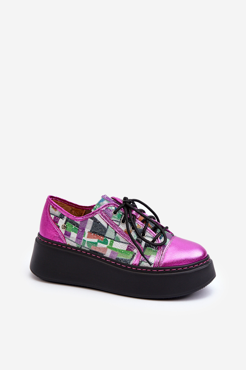 Półbuty Sneakersy Skórzane Damskie Na Platformie Maciejka 06479-15 Fuksja