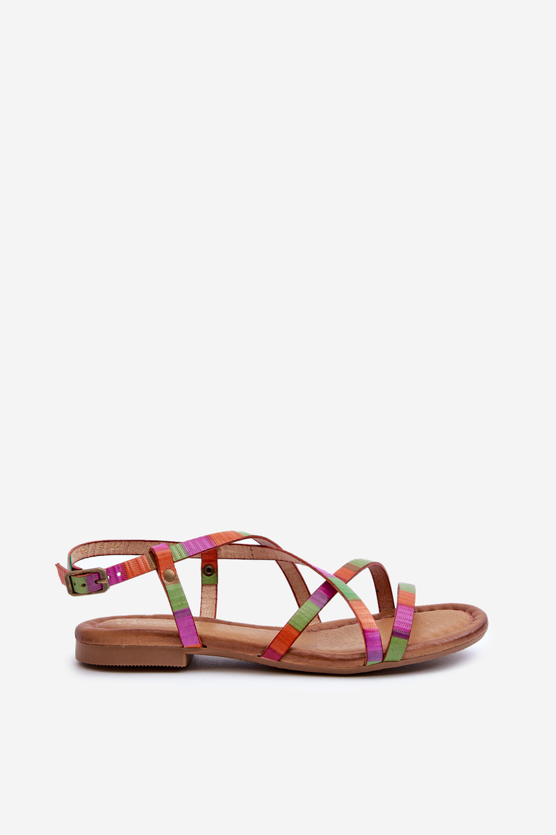 Płaskie Skórzane Sandały Damskie Maciejka 06635-39 Multikolor
