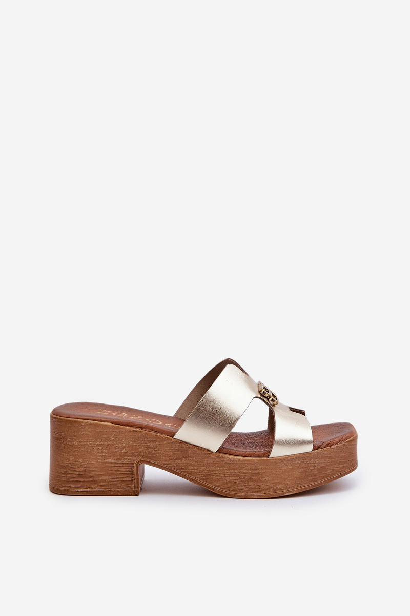 Zazoo 40412 Skórzane Eleganckie Klapki Damskie Z Ozdobą Złote