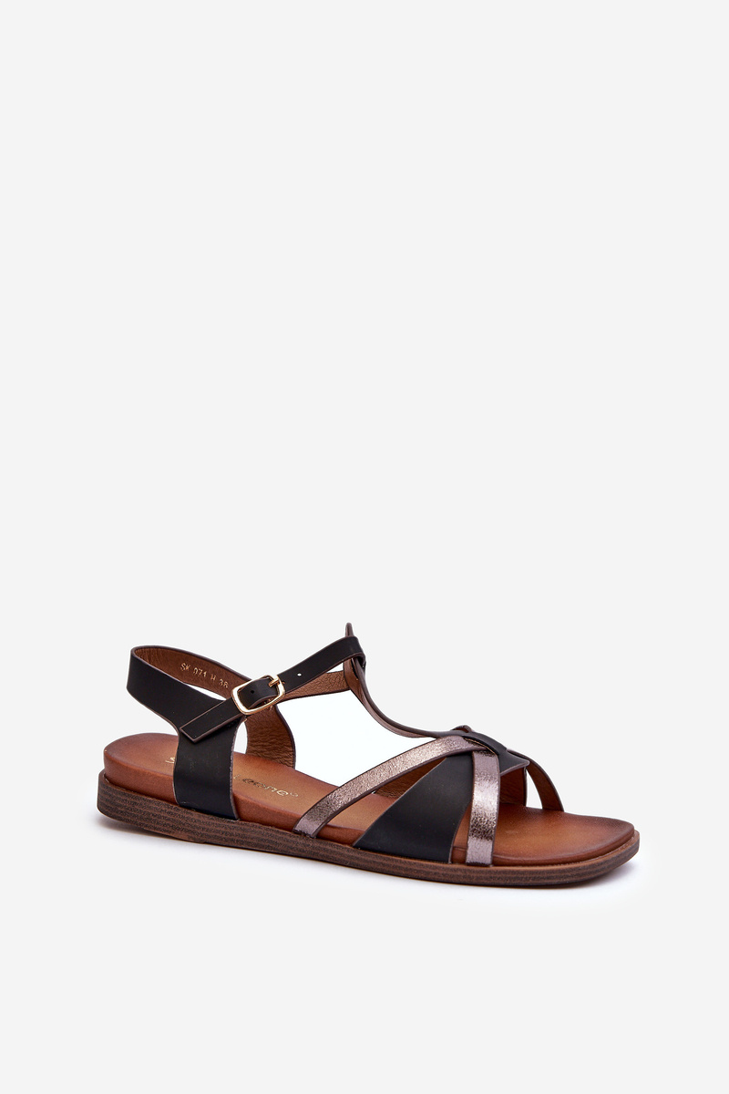 Sandały Damskie Płaskie Z Eko Skóry Sergio Leone SK071H Czarne