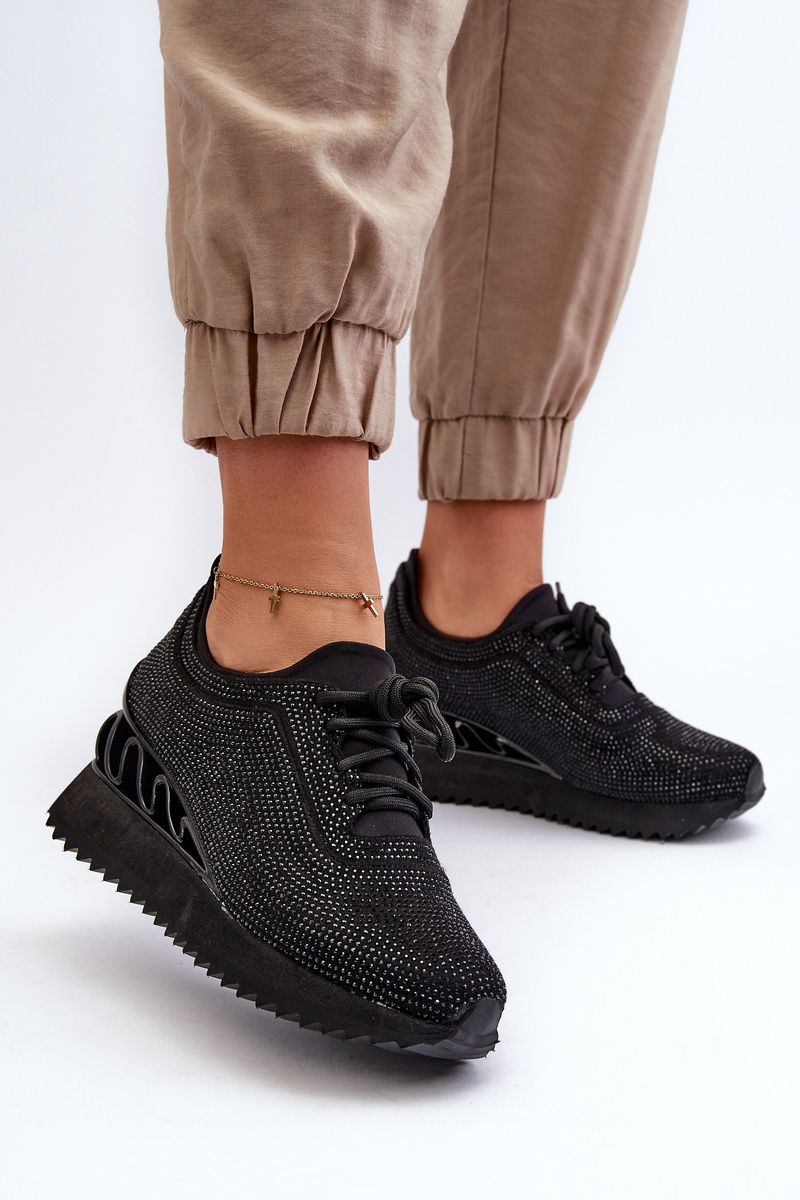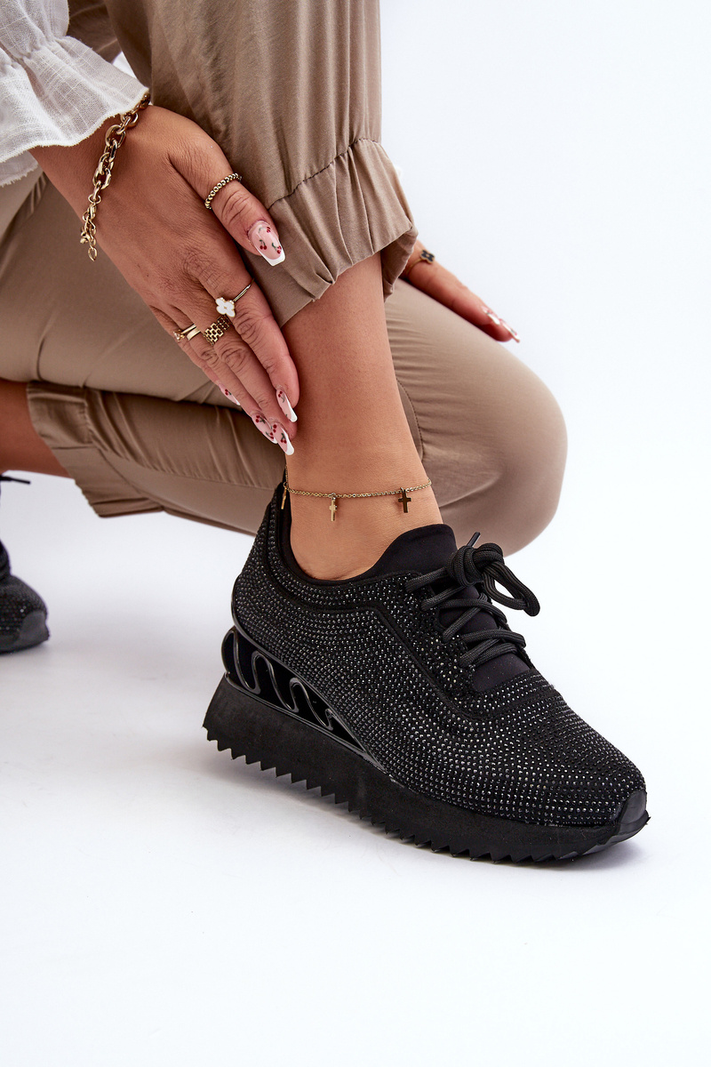Sneakersy Damskie Na Koturnie Zdobione Cyrkoniami D&A MR38-377 Czarne