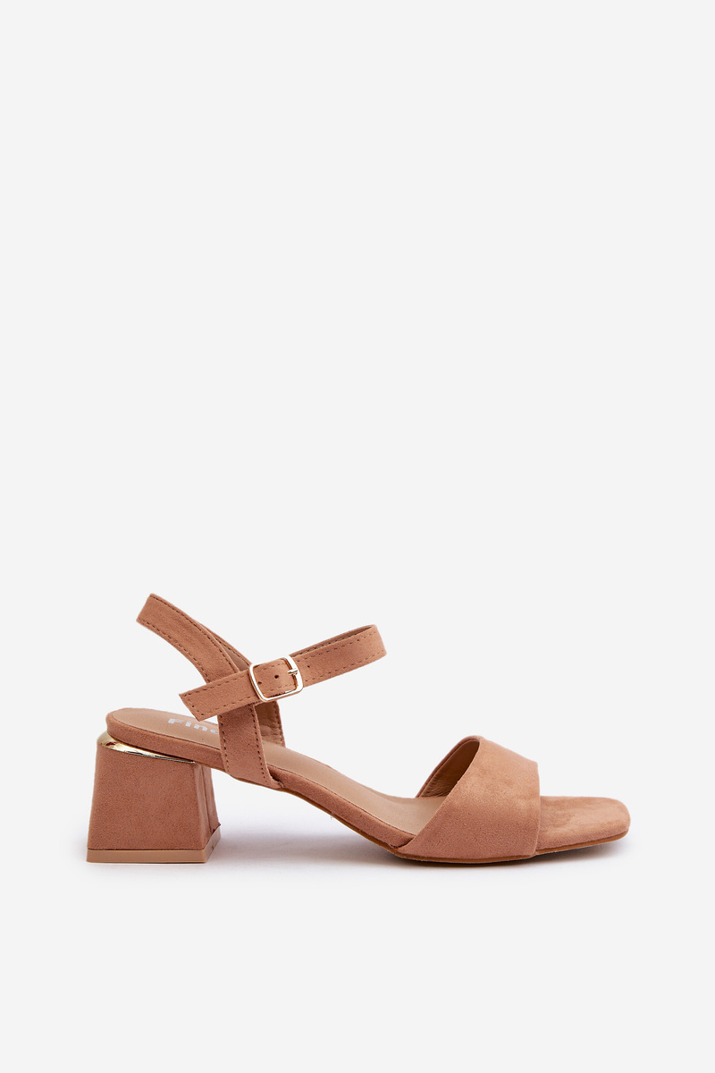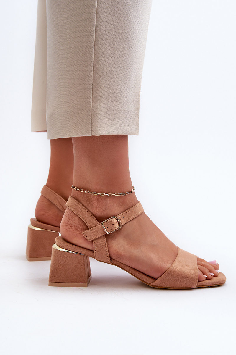 Sandały Damskie Na Klocku Z Eko Zamszu Camel Leisha