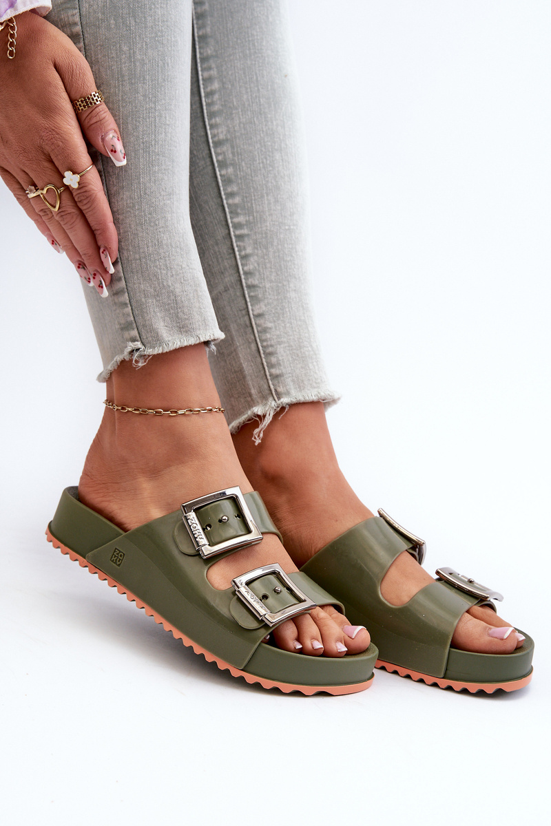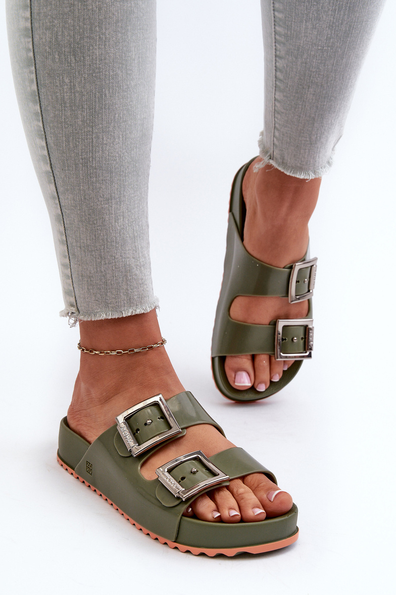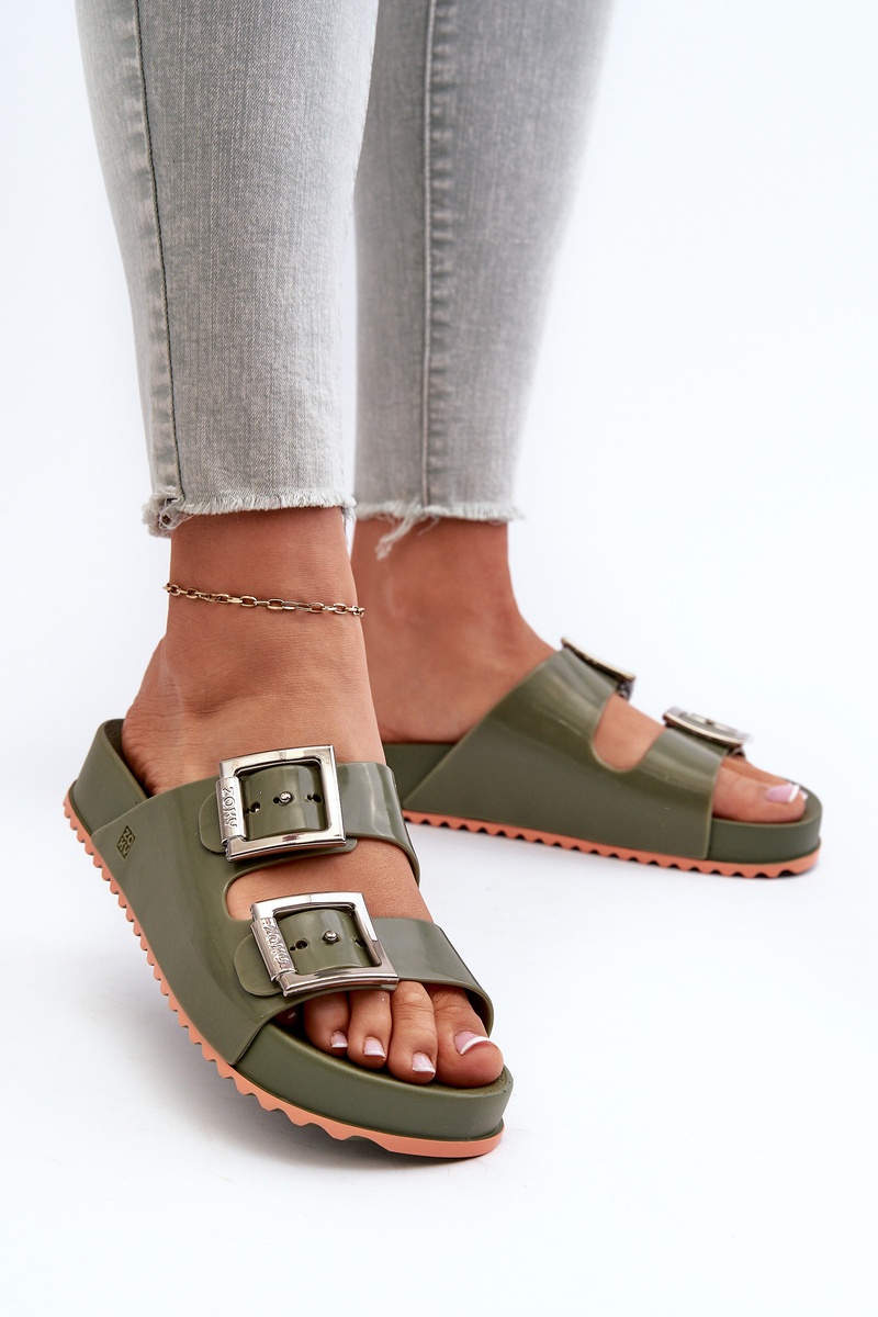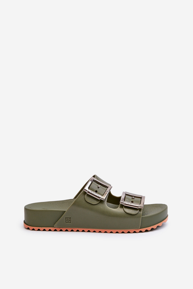 Damskie Klapki Gładkie ZAXY NN285057 Ciemnozielone