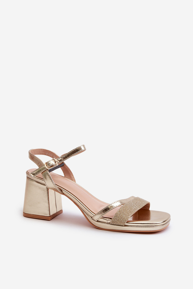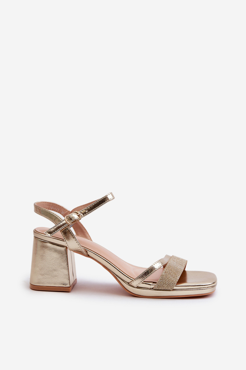 Damskie Sandały Na Obcasie Z Błyszczącym Paskiem Złote Tessata