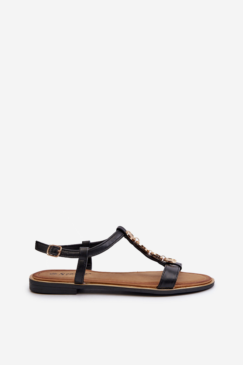 Płaskie Sandały Damskie Z Ozdobami Czarne Muridia