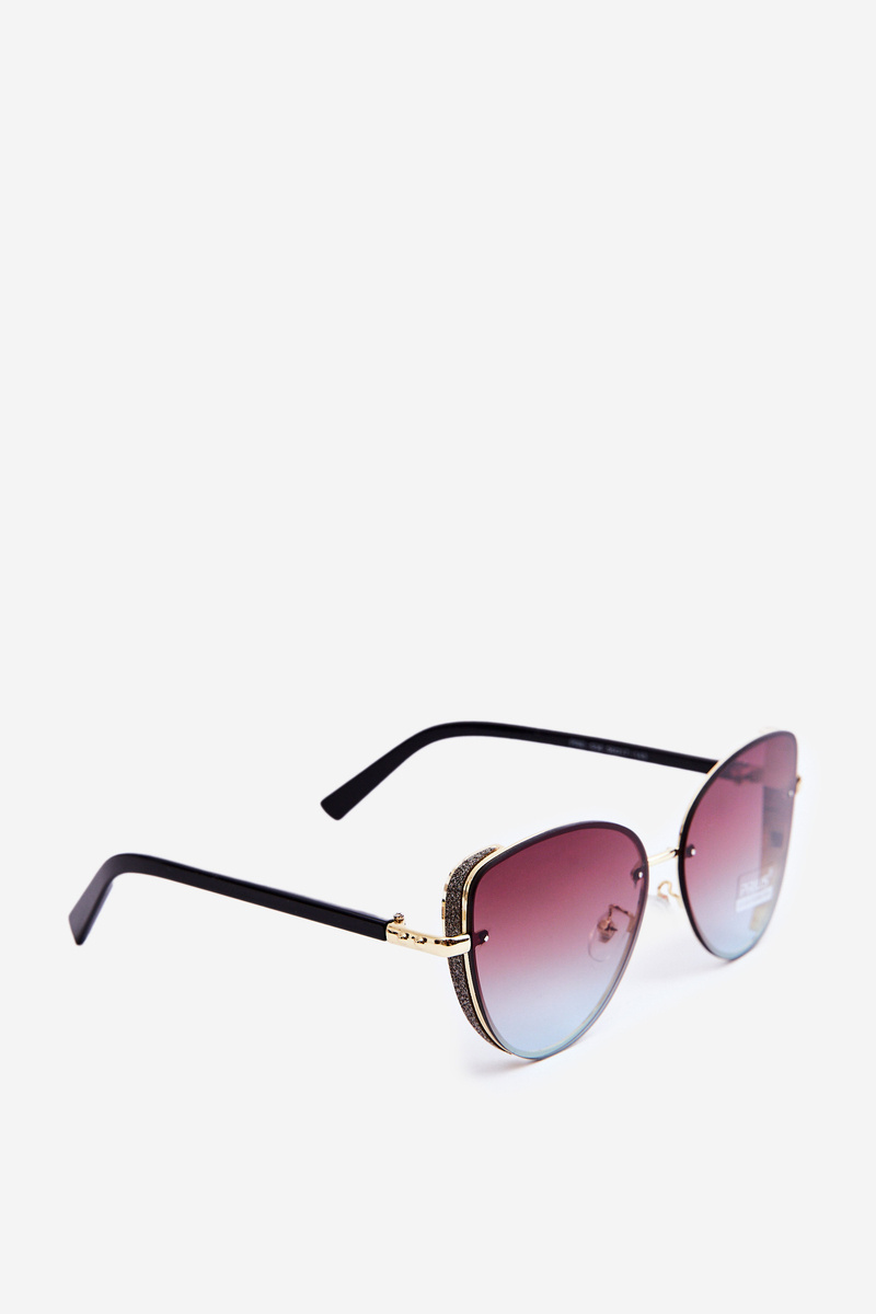 Damskie Okulary Przeciwsłoneczne Z Brokatowymi Wstawkami UV400 Czarno-Złote
