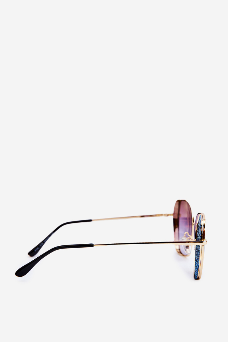 Okulary Przeciwsłoneczne Damskie Z Brokatowymi Wstawkami UV400 Złoto-Niebieskie
