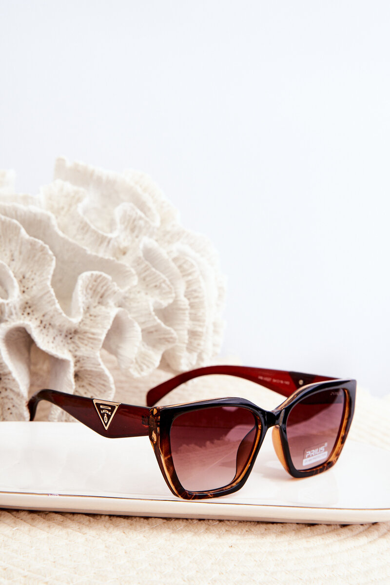 Damskie Klasyczne Okulary Przeciwsłoneczne Ze Złotymi Detalami UV400 Brązowe