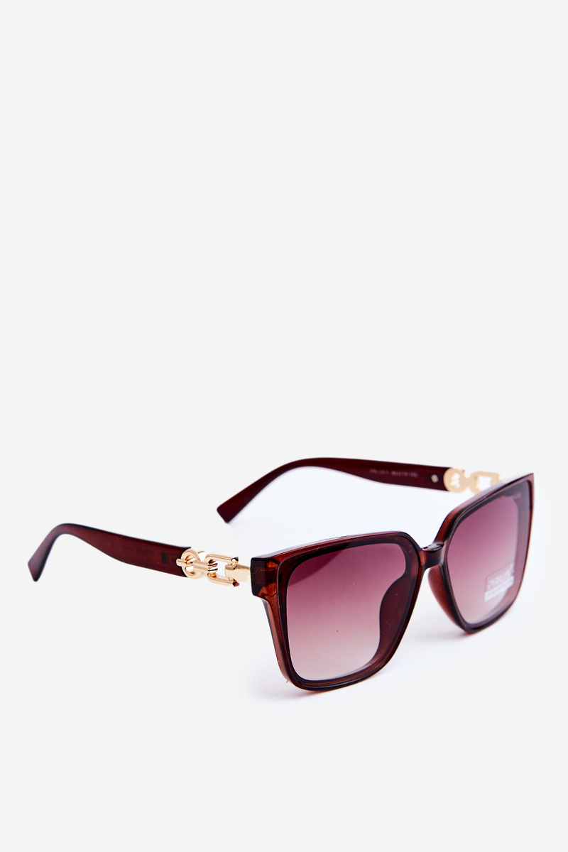 Damskie Okulary Przeciwsłoneczne Z Ozdobnymi Detalami UV400 Ciemnobrązowe