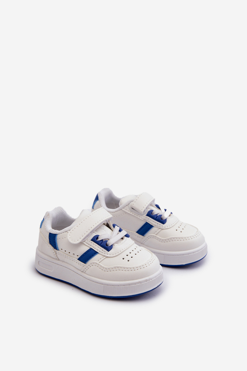 Dziecięce buty sportowe wykonane z eko skóry posiadają na przodzie delikatną perforację. Osadzone na platformie z tworzywa sztucznego. Wkładka została wykonana z materiału. Ten model z pewnością przypadnie do gustu Twojemu dziecku! Sneakersy posiadają zapinanie na rzep. Przy wyborze rozmiaru prosimy sugerować się tabelą rozmiarów.