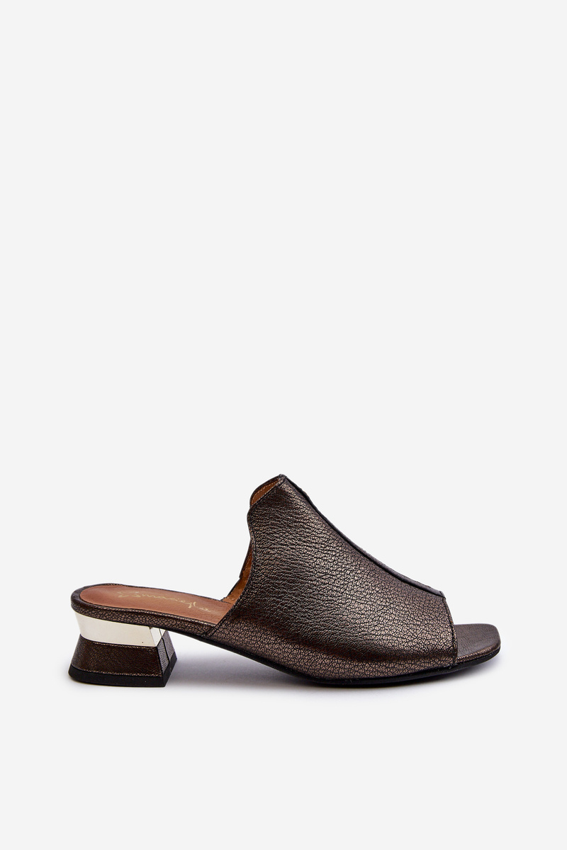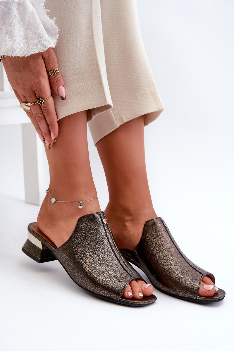 Eleganckie Klapki Damskie Ze Skóry Naturalnej Na Niskim Obcasie Maciejka 06360-20 Grafitowe