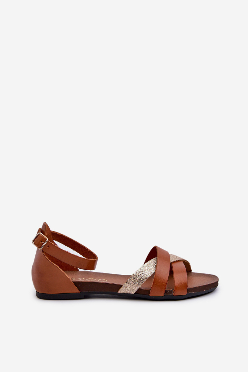 Zazoo 40225 Skórzane Sandały Na Płaskim Obcasie Brązowe
