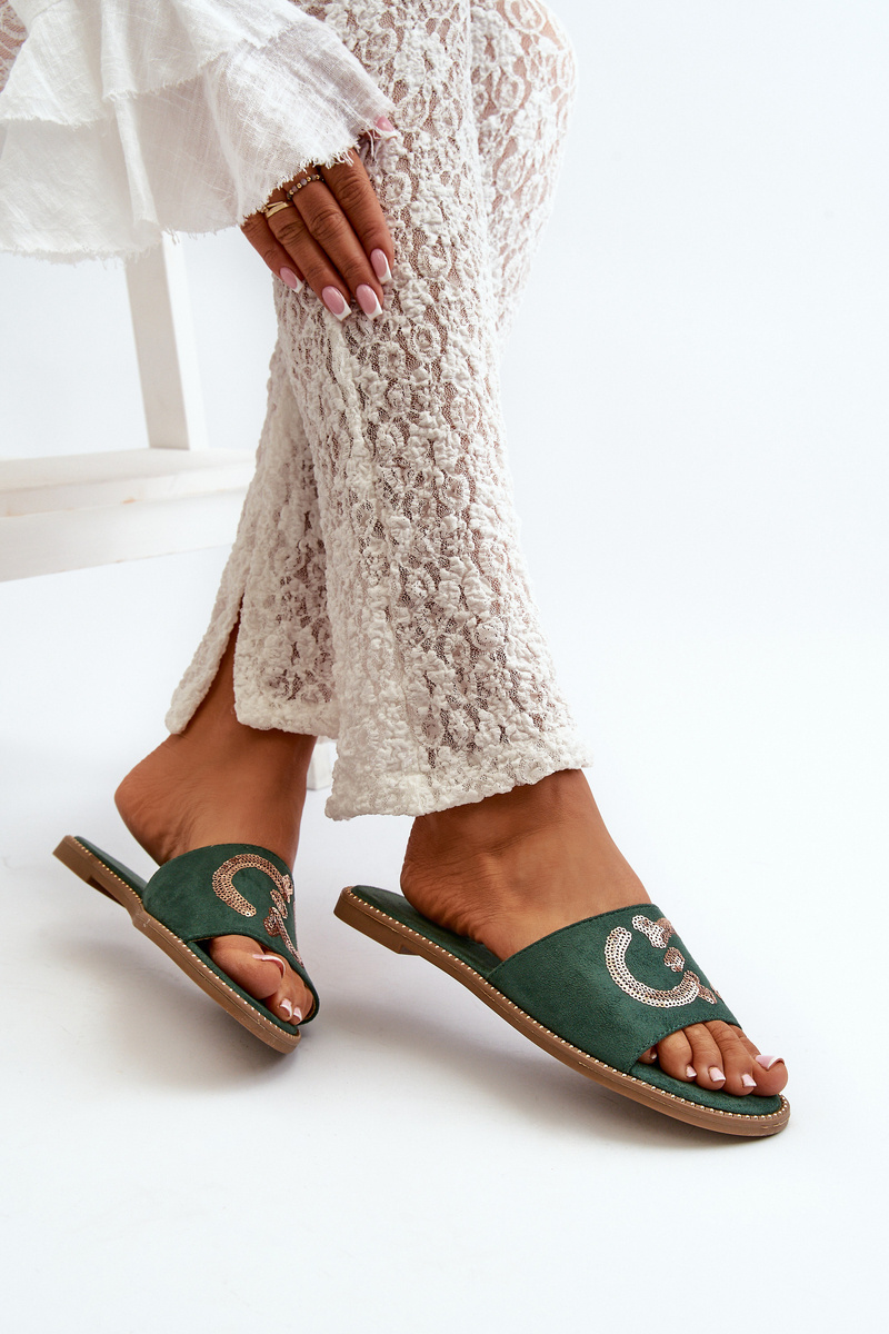 Damskie Płaskie Klapki Z Cekinami S.Barski KV27-052 Zielone