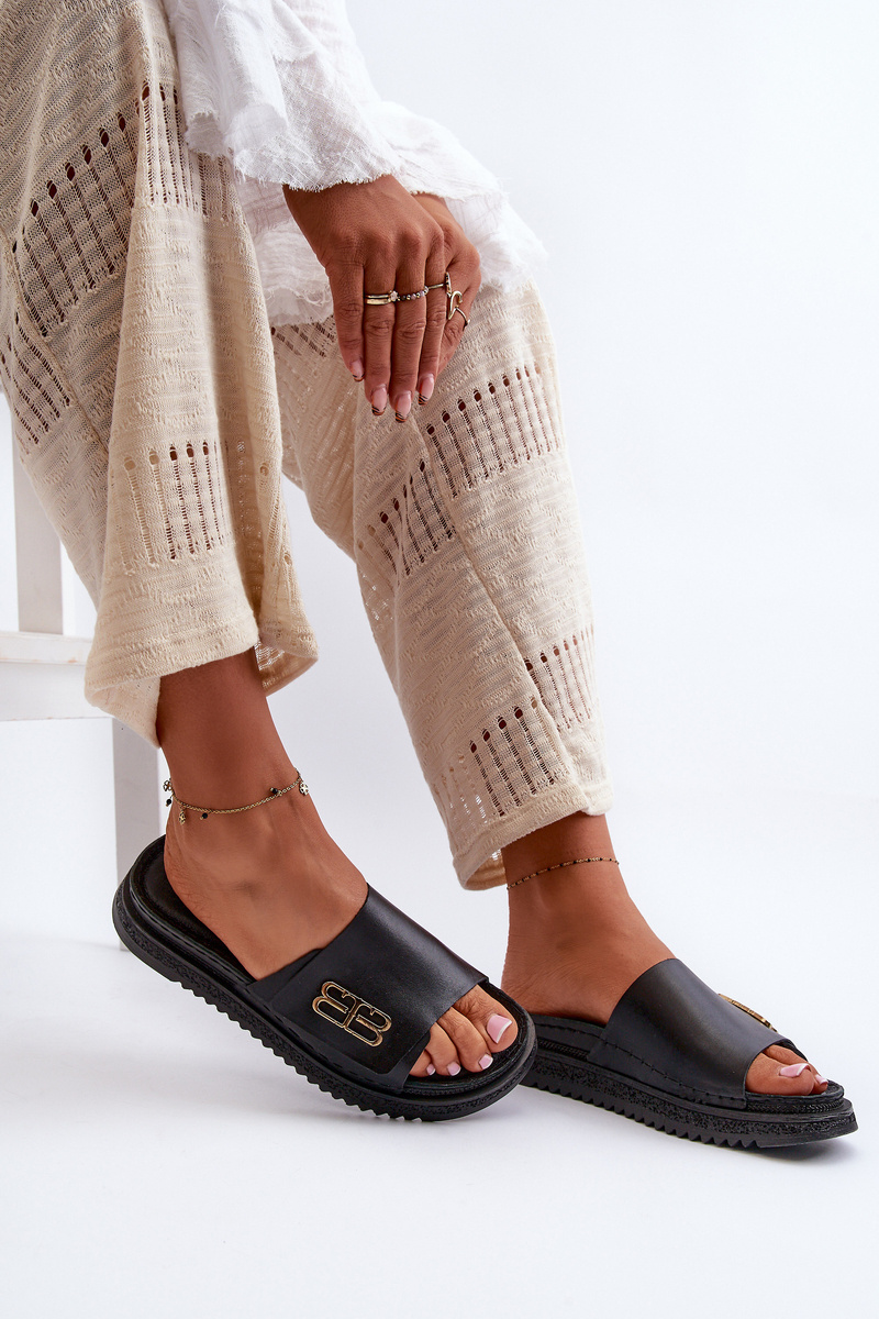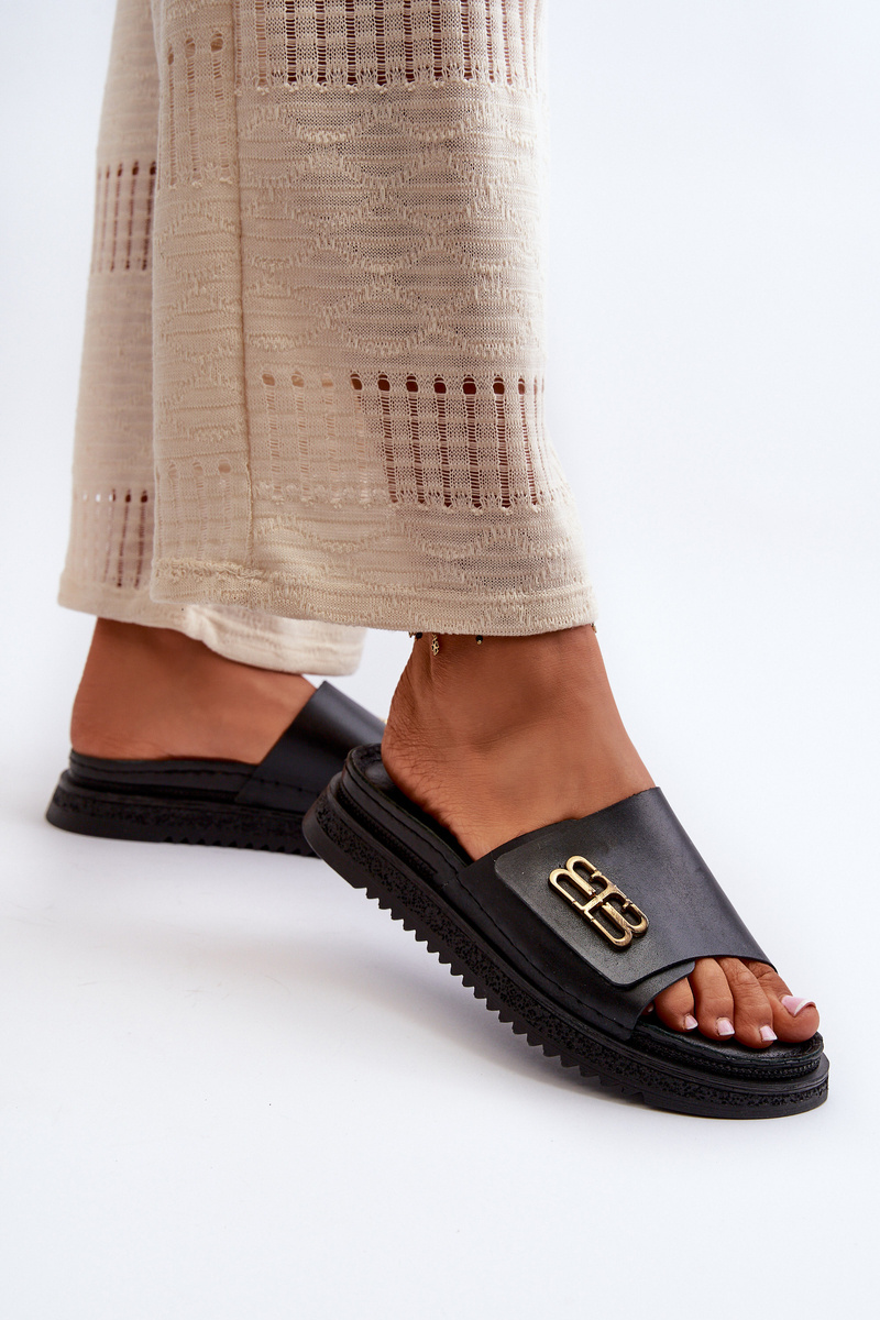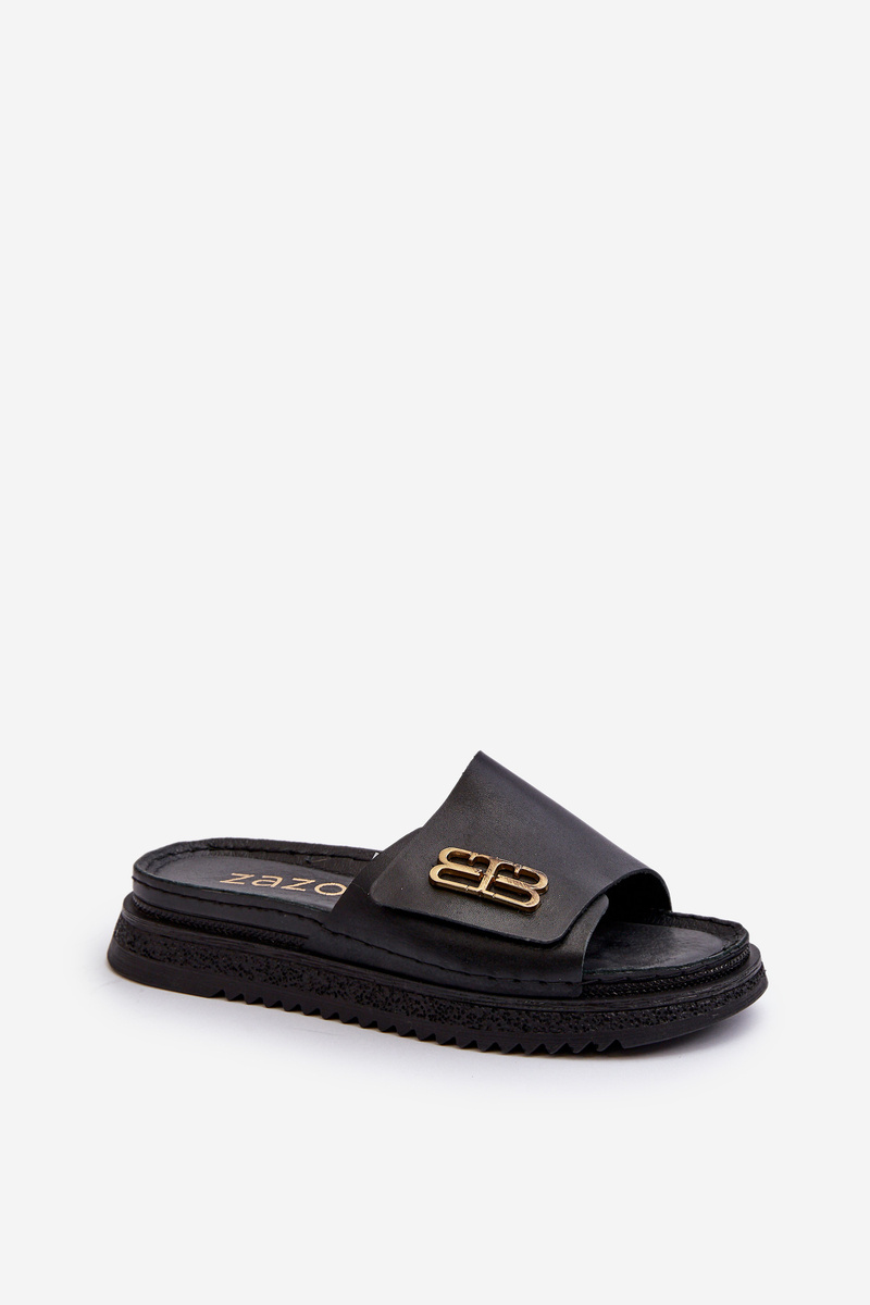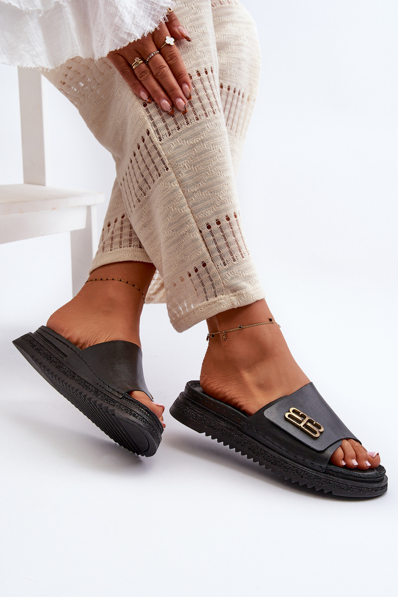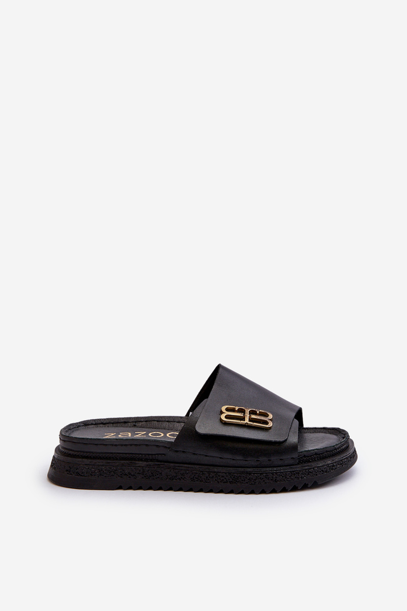 Zazoo 50101 Klapki Damskie Skórzane Na Platformie Czarne