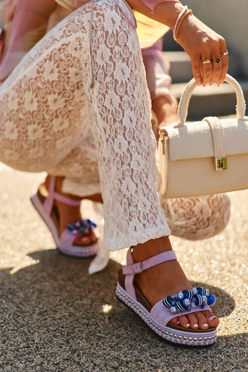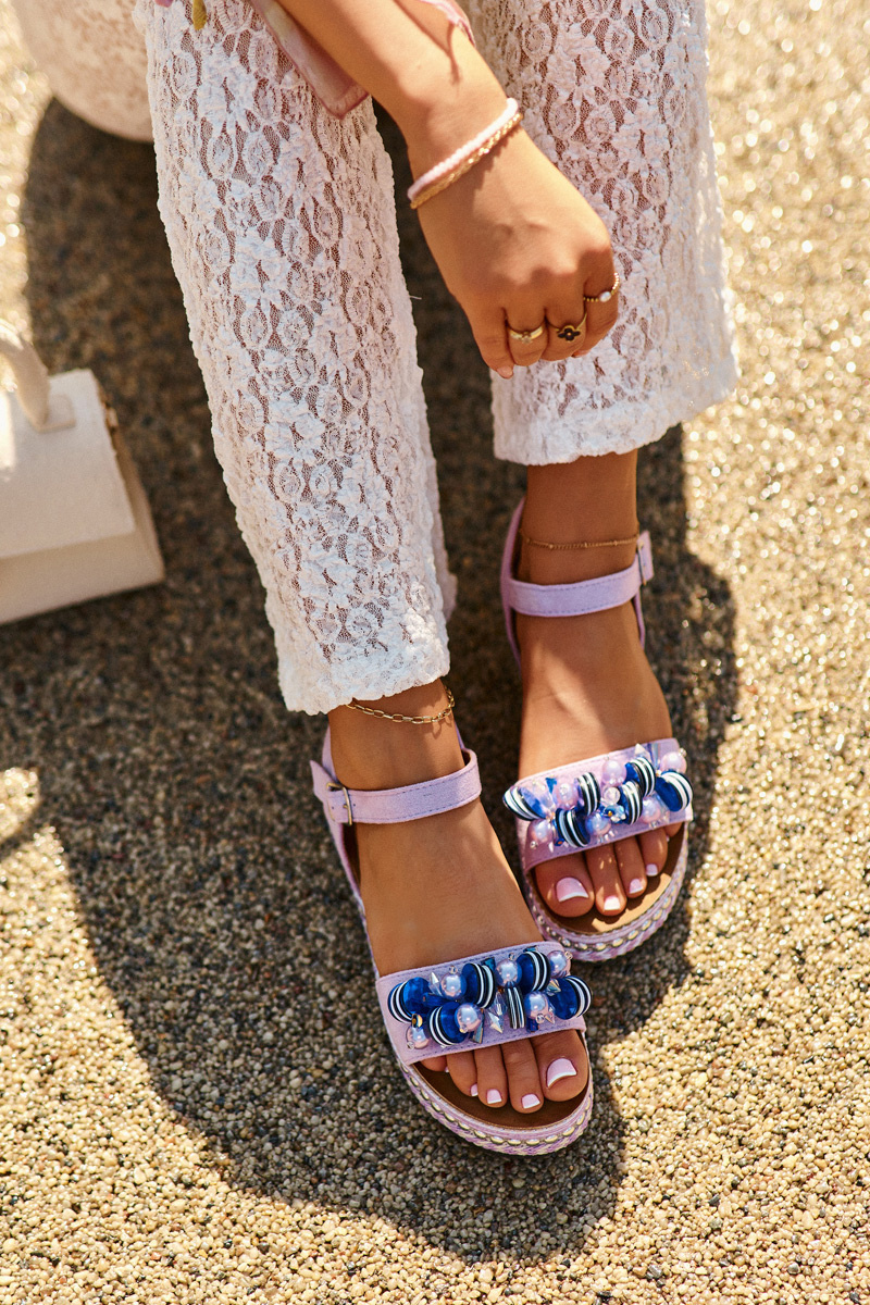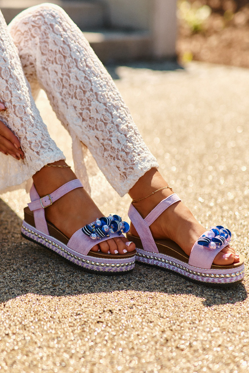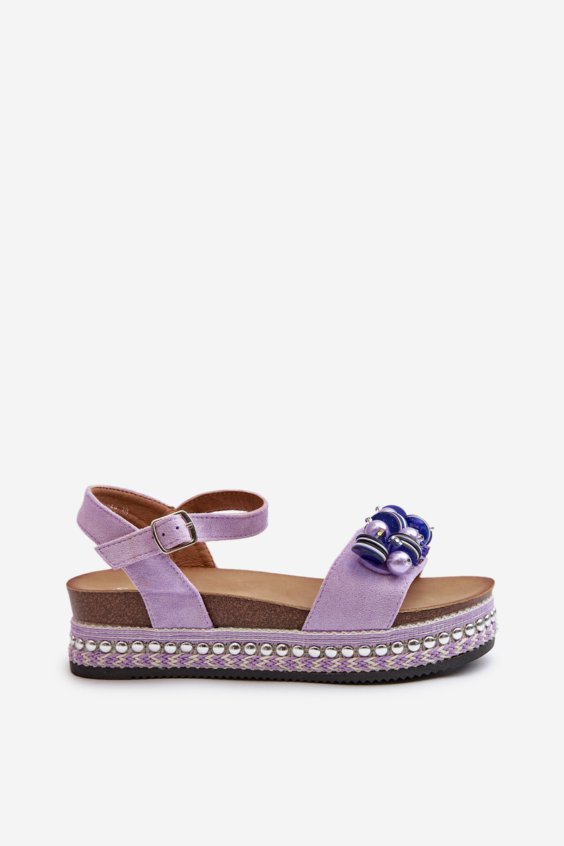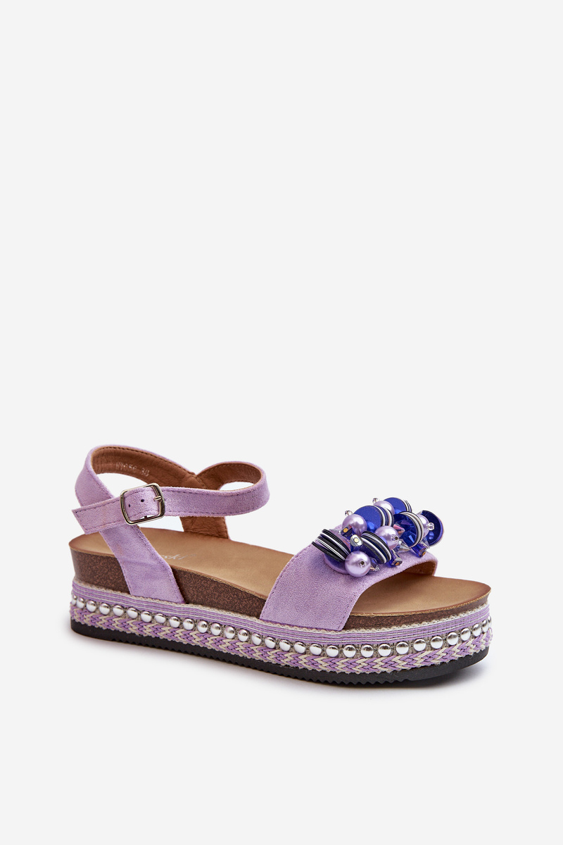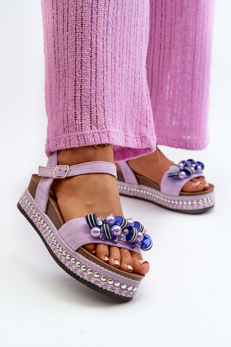Sandały Damskie Na Koturnie I Platformie Z Ozdobami S.Barski HY056 Fioletowe