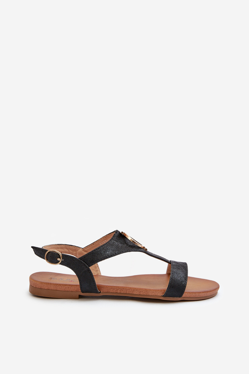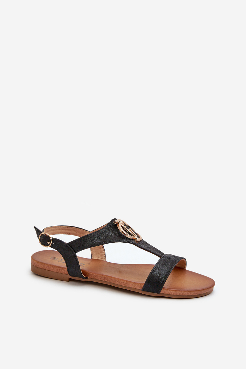 Płaskie Sandały Damskie Ze Złotą Ozdobą S.Barski KV27-051 Czarne