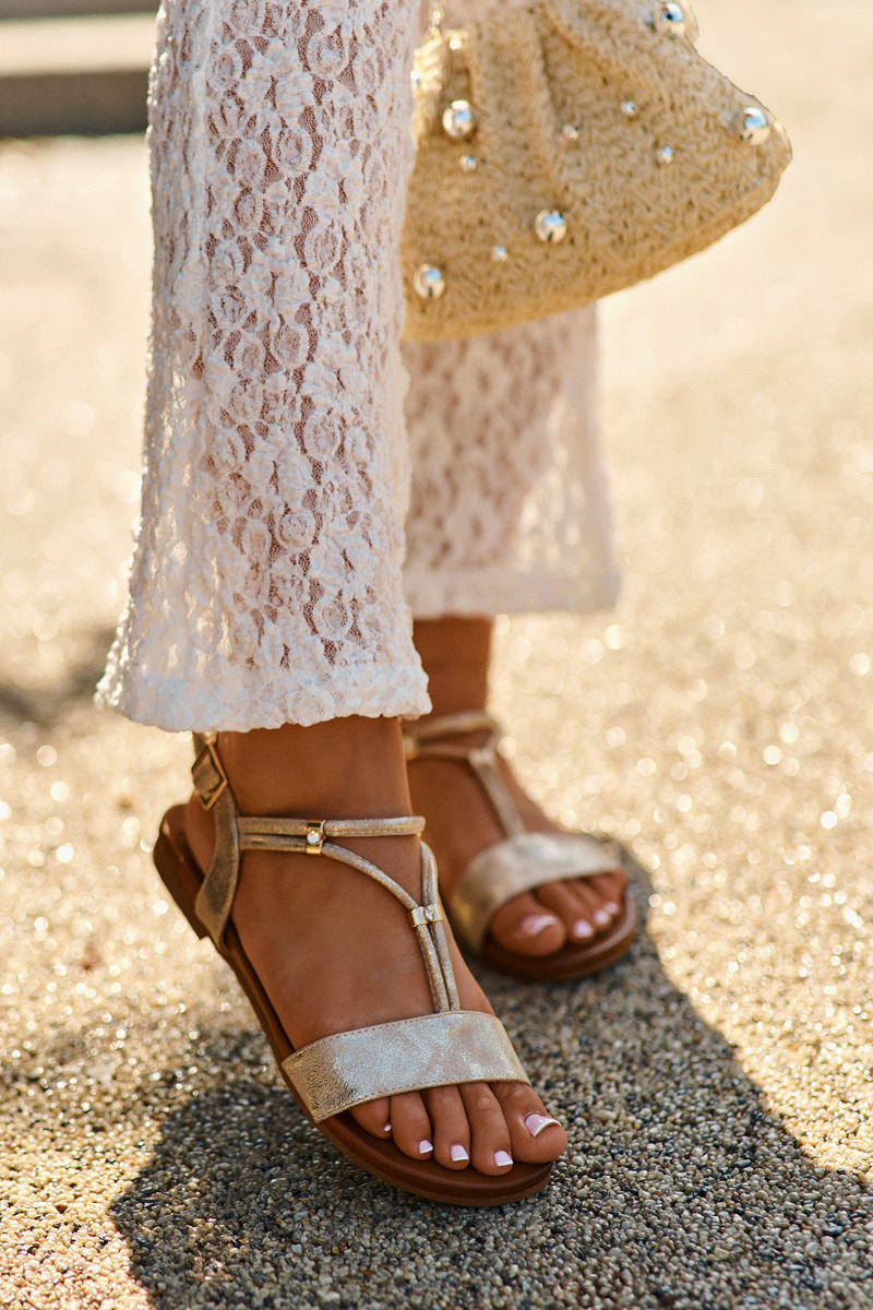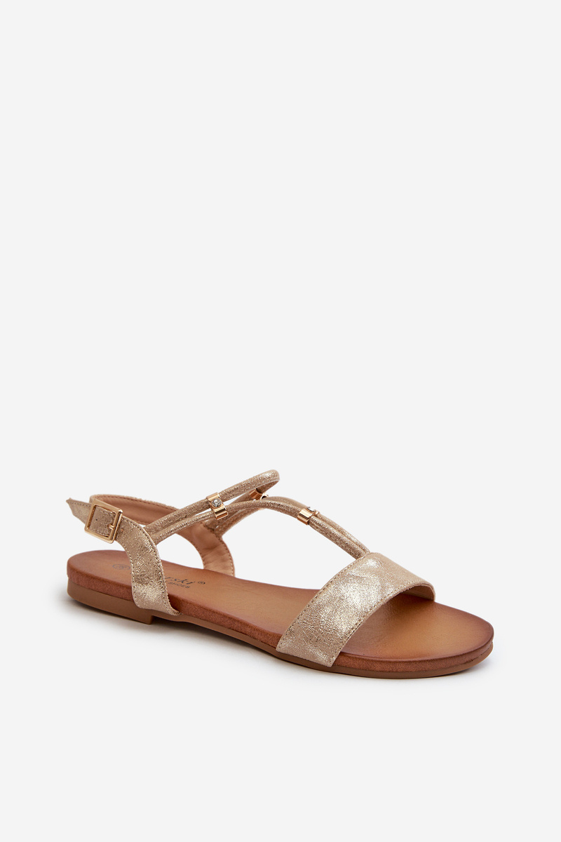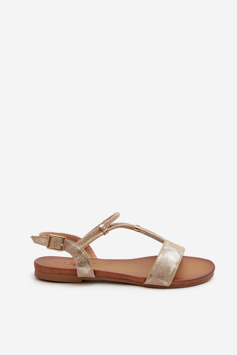 Damskie Płaskie Sandały Z Paskami S.Barski KV27-010 Złote