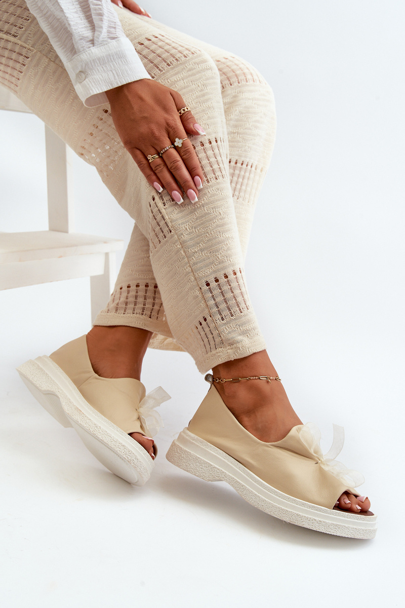 Zazoo 2939 Skórzane Sandały Damskie Z Kokardką Jasnobeżowe