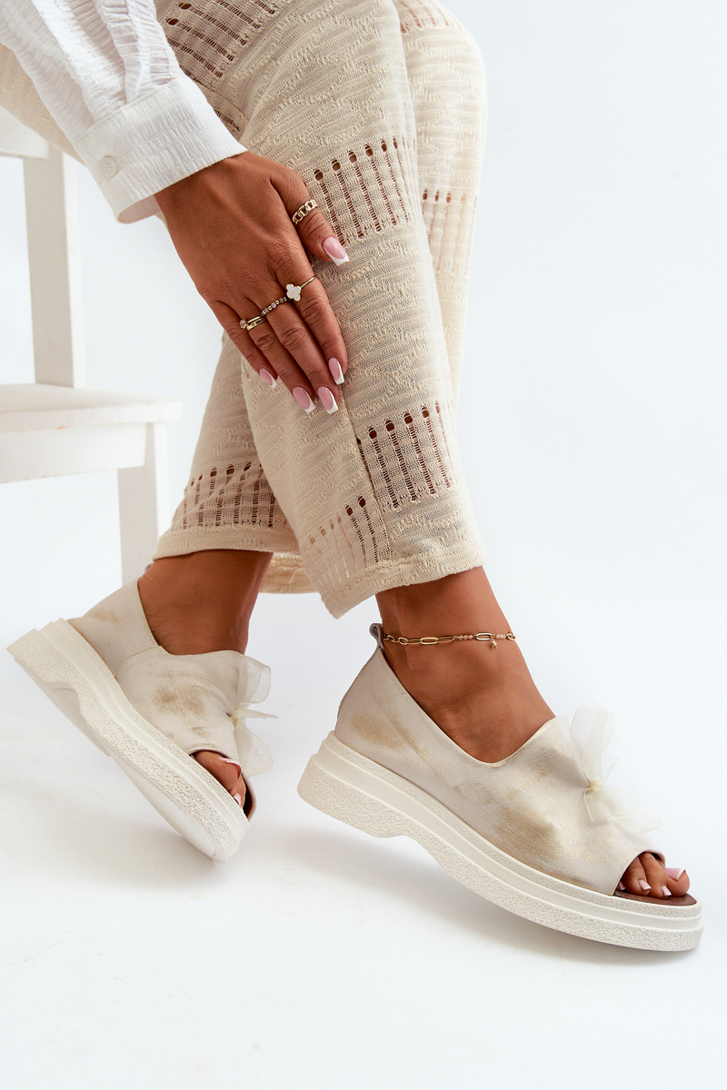 Zazoo 2939 Skórzane Sandały Damskie Z Kokardką Złoty Przecierany