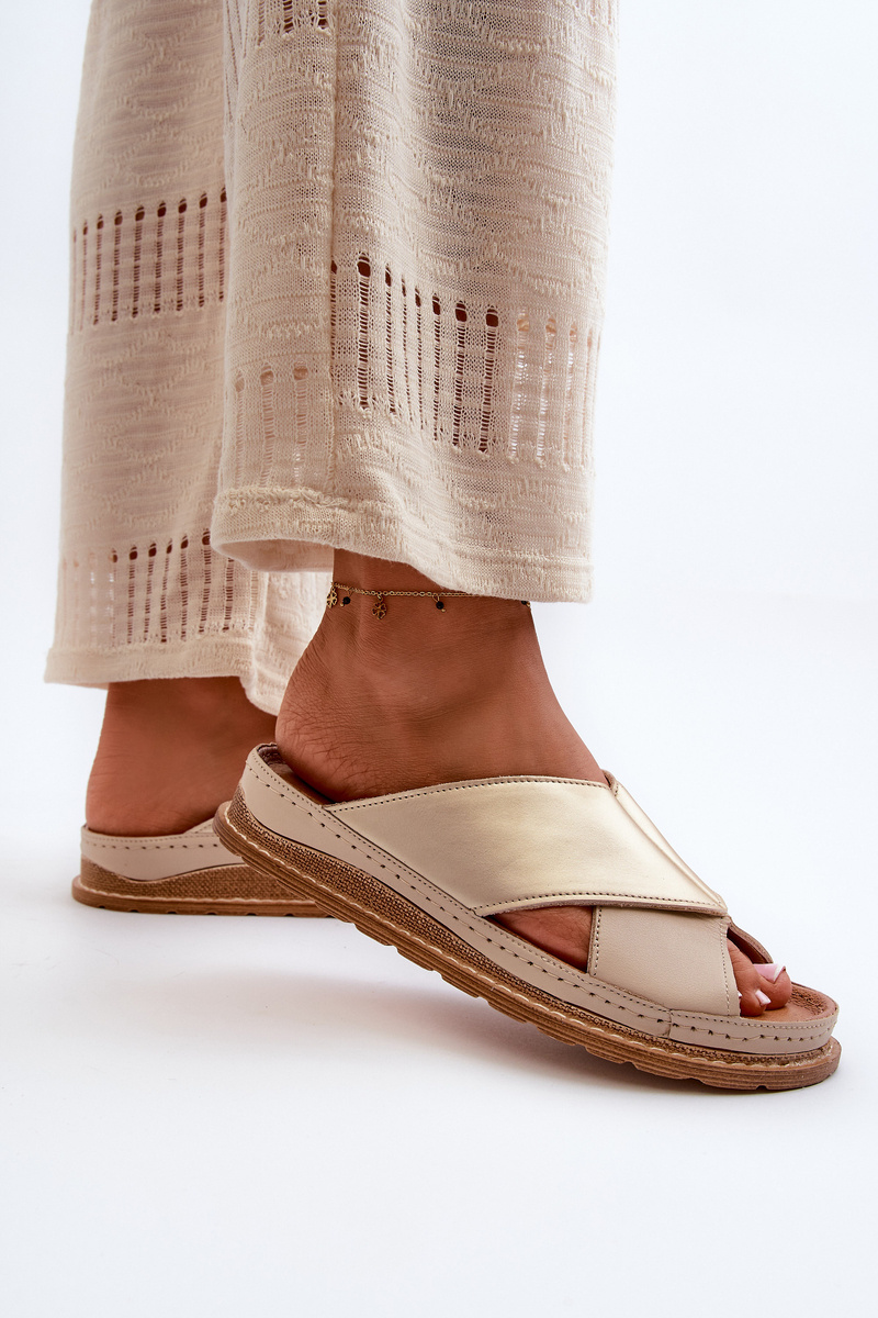 Skórzane Profilowane Klapki Maciejka 04986-04 Złoto-Beżowe