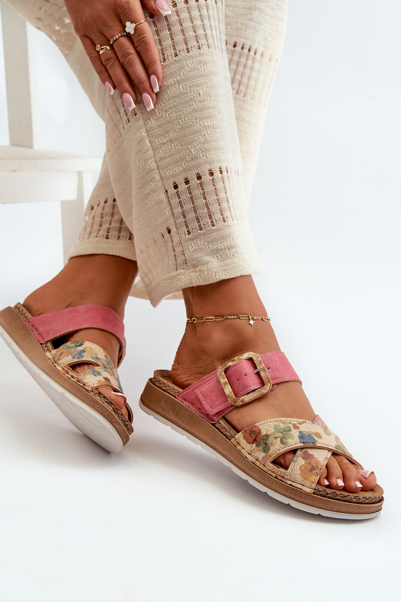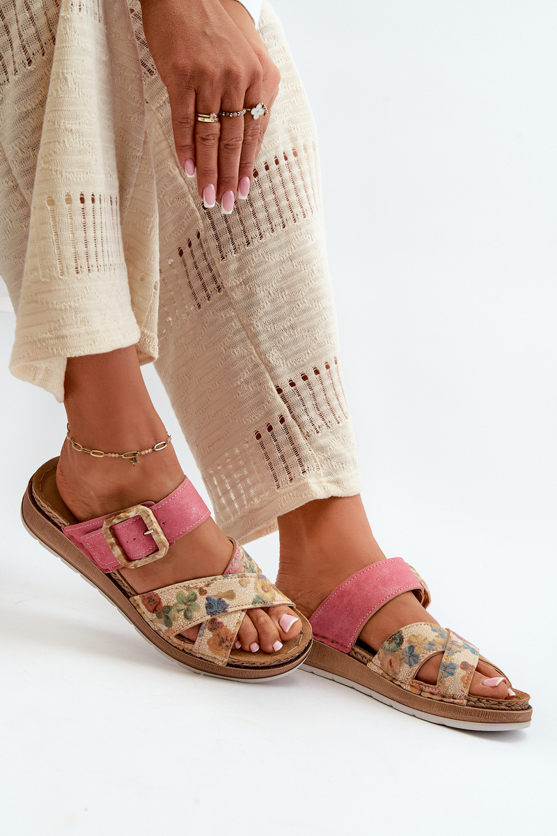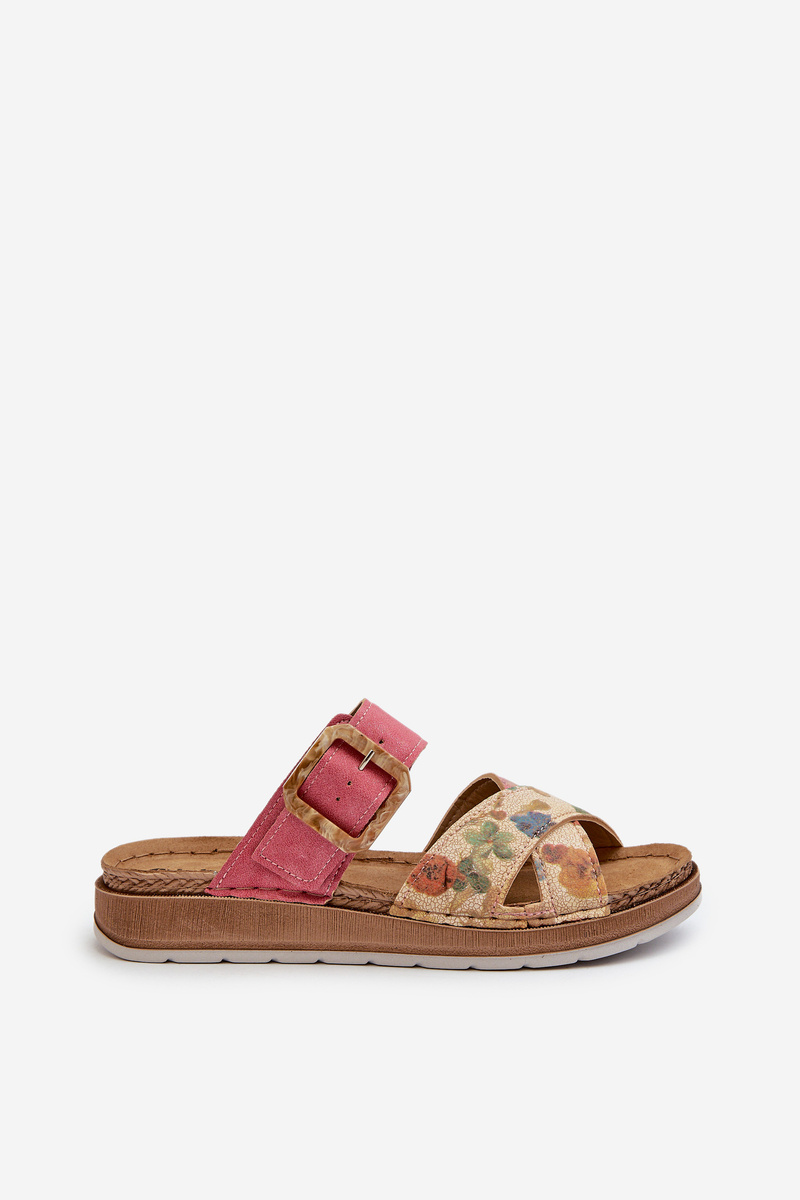 Wygodne Klapki Damskie Z Klamrą W Kwiaty Inblu GS000051 Różowe