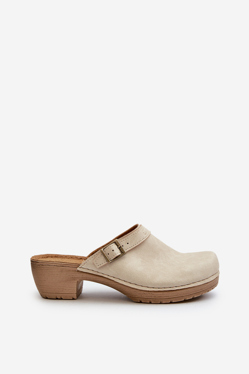 Klapki Chodaki Damskie Na Niskim Obcasie Inblu BL000004 Beżowe