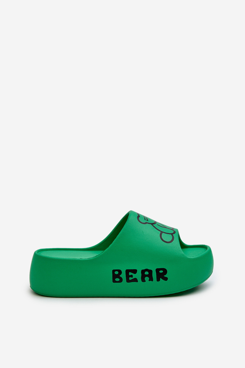 Piankowe Klapki Damskie Na Masywnej Podeszwie Z Misiem Zielone Lamira