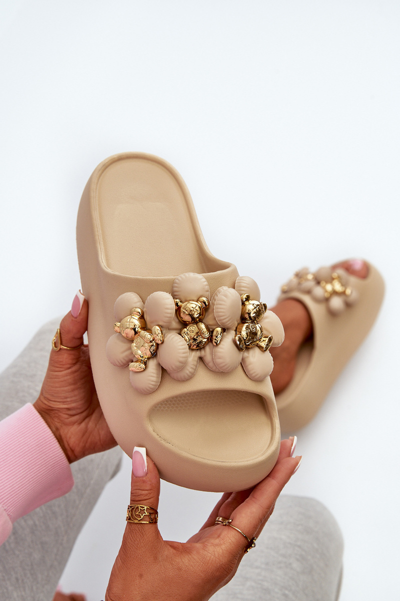 Damskie Klapki Piankowe Z Ozdobami Na Grubej Podeszwie Ciemnobeżowe Bremavia