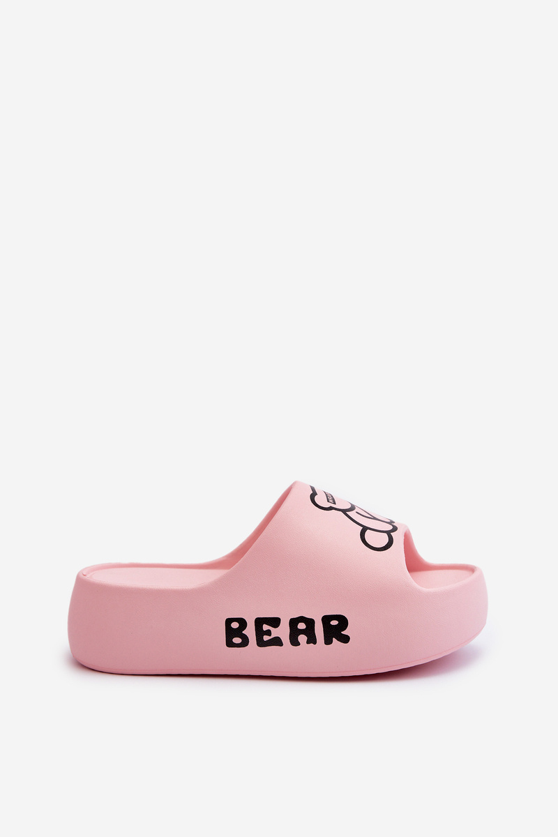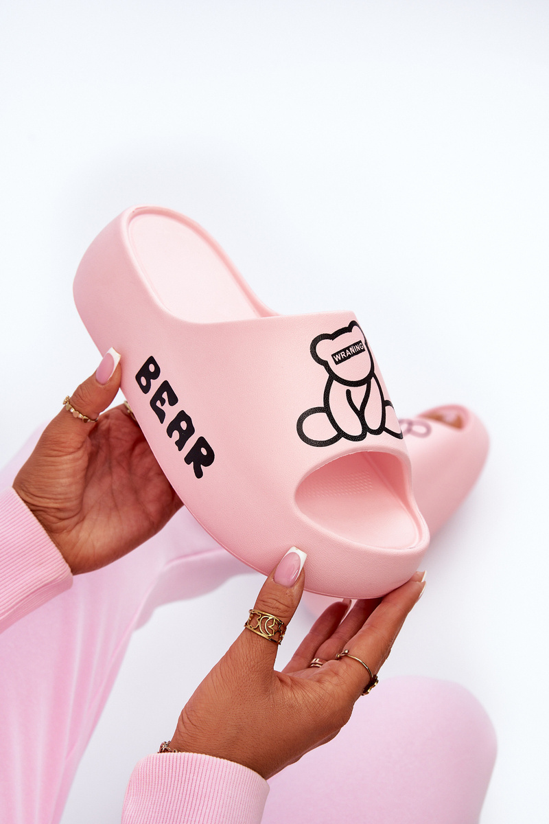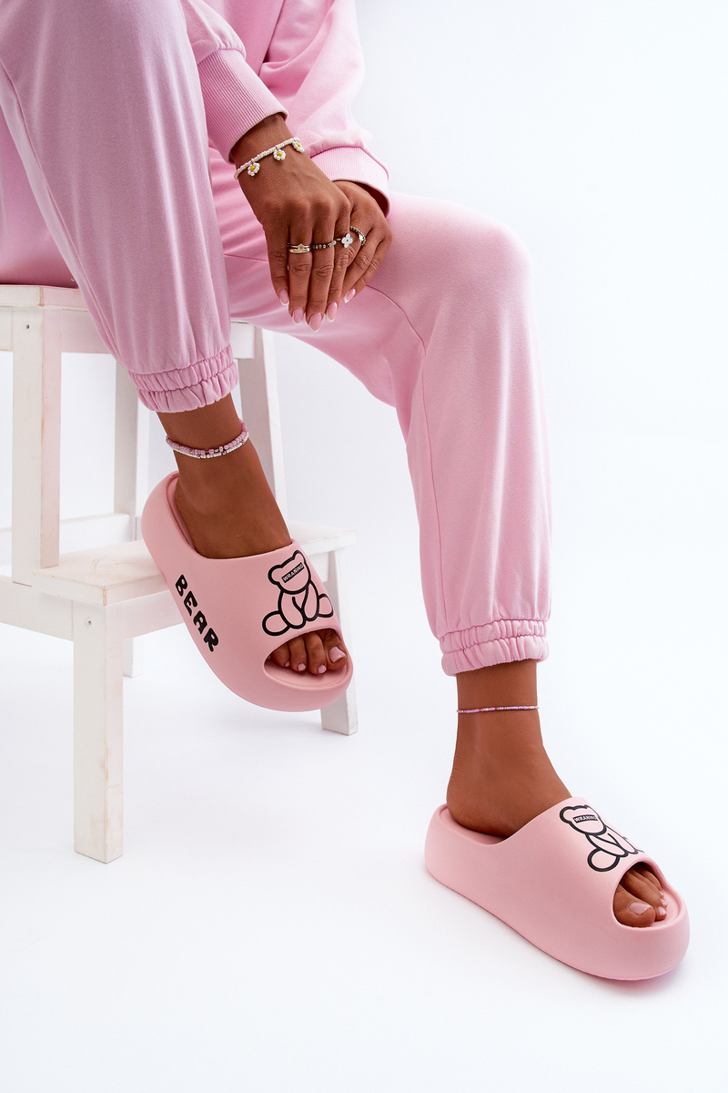 Piankowe Klapki Damskie Na Masywnej Podeszwie Z Misiem Różowe Lamira