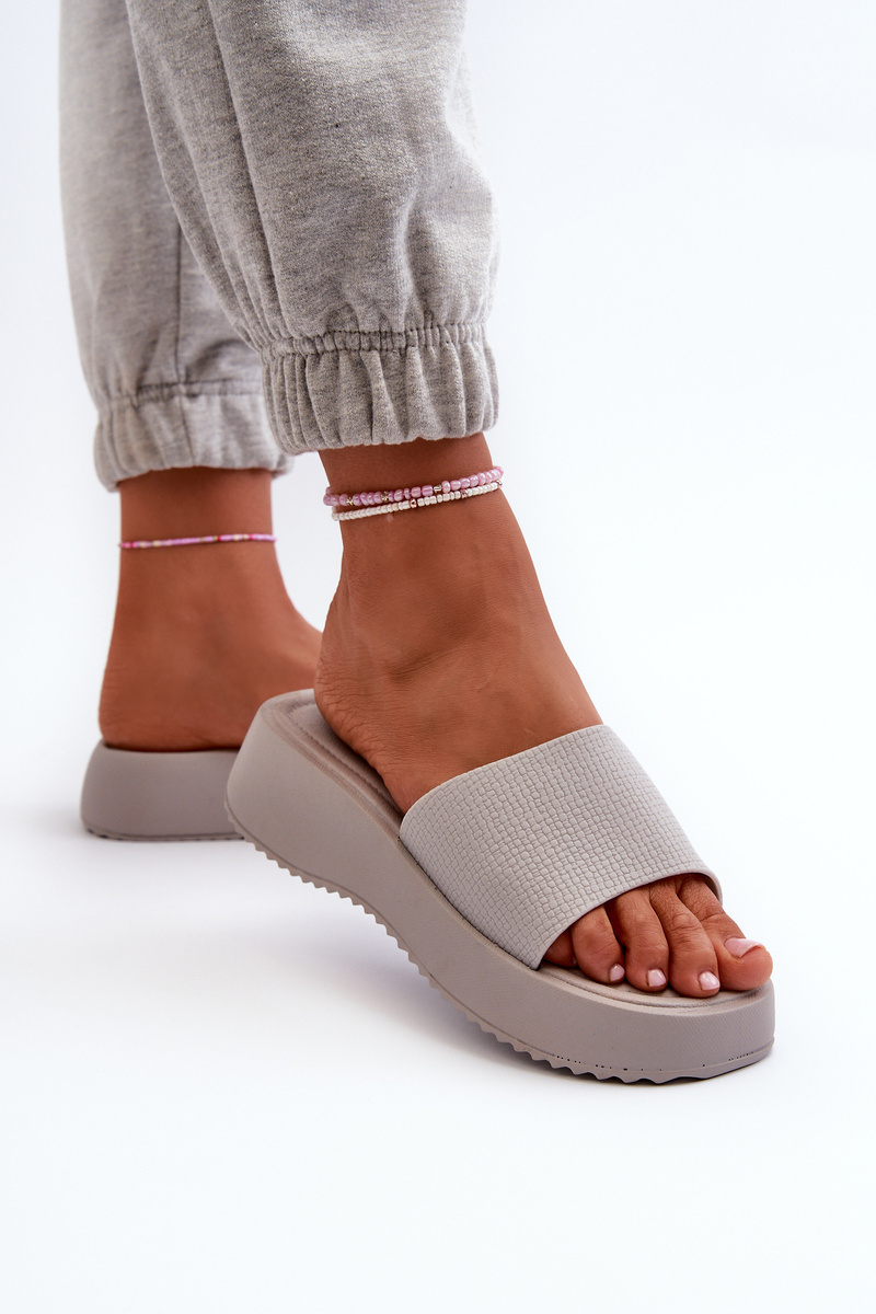 Klapki Damskie Na Platformie I Koturnie Szare Vimarils