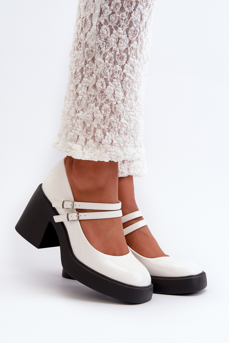 Czółenka Na Masywnym Obcasie Lakierowane Białe Halmina