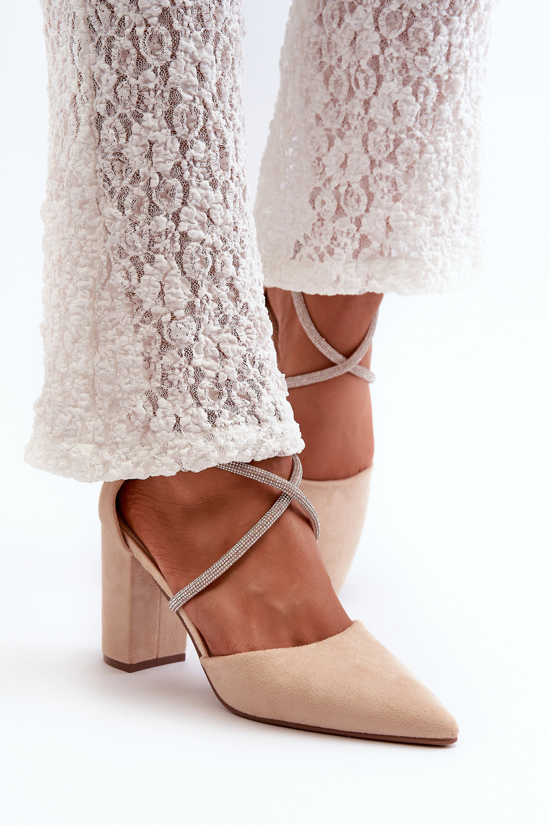Eko Zamszowe Czółenka Na Słupku Z Cyrkoniami Beżowe Lagra