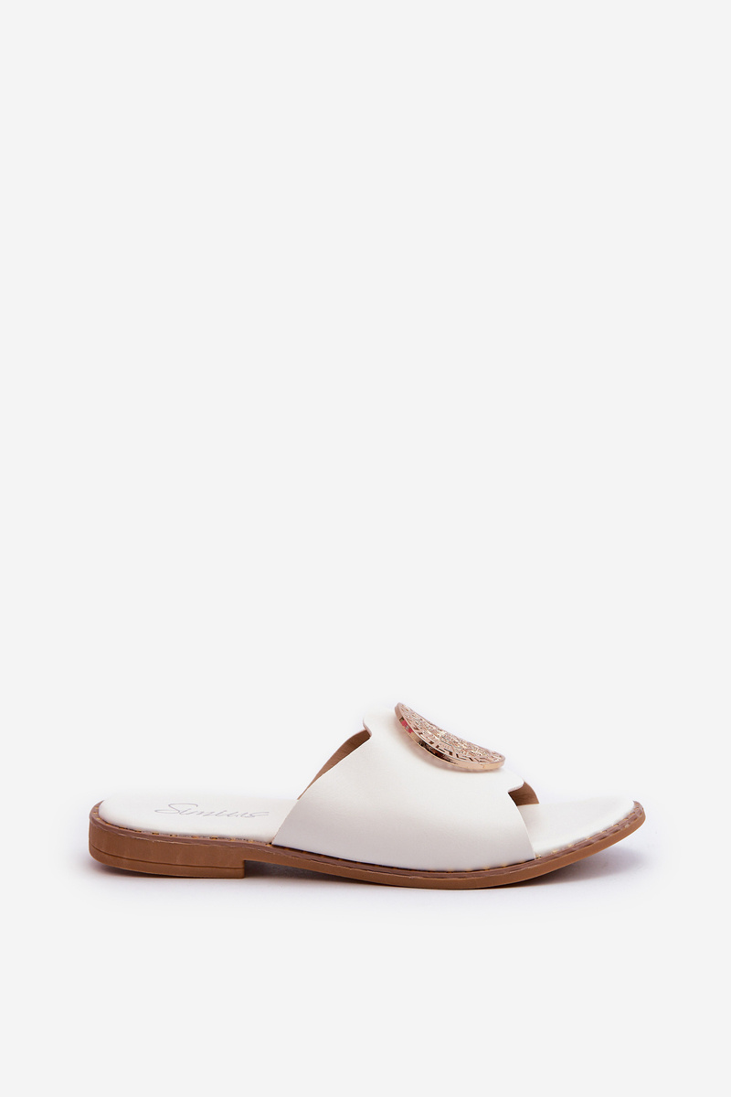 Klapki Damskie Na Płaskim Obcasie Z Ozdobą Białe Rivashea