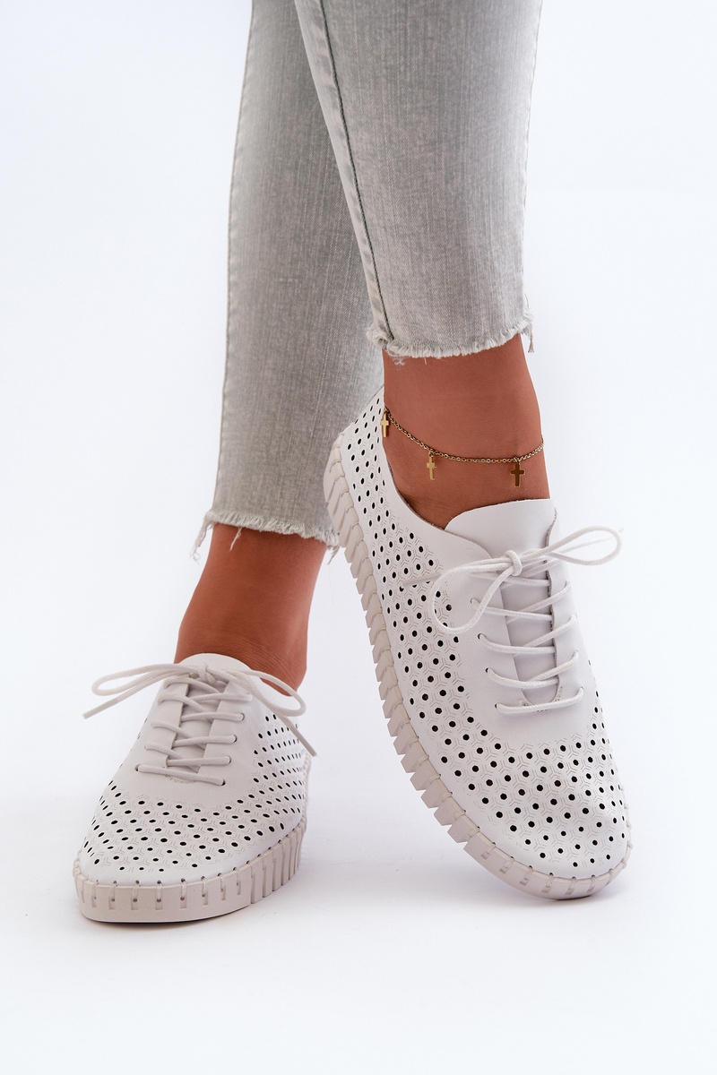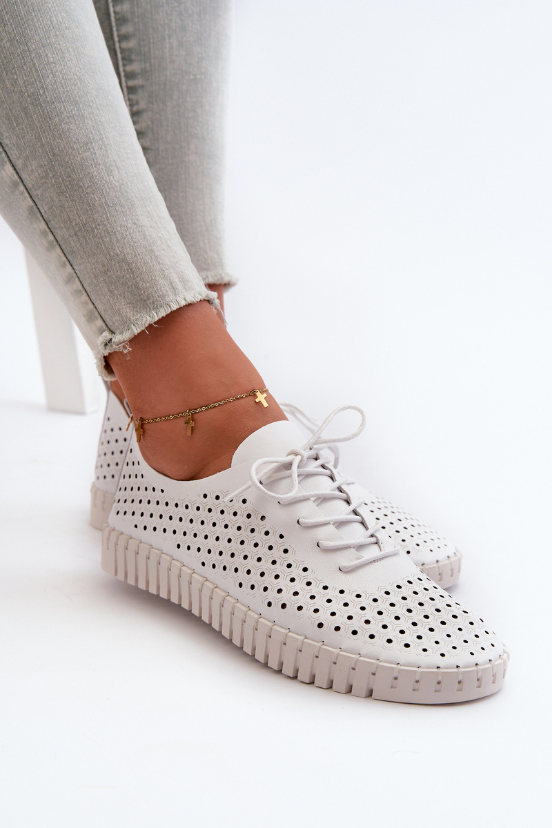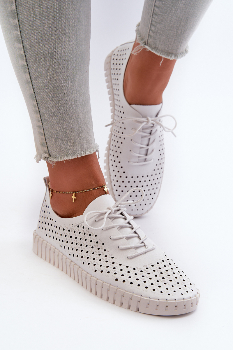 Skórzane Damskie Trampki Z Ażurowym Wzorem Białe Ilvima
