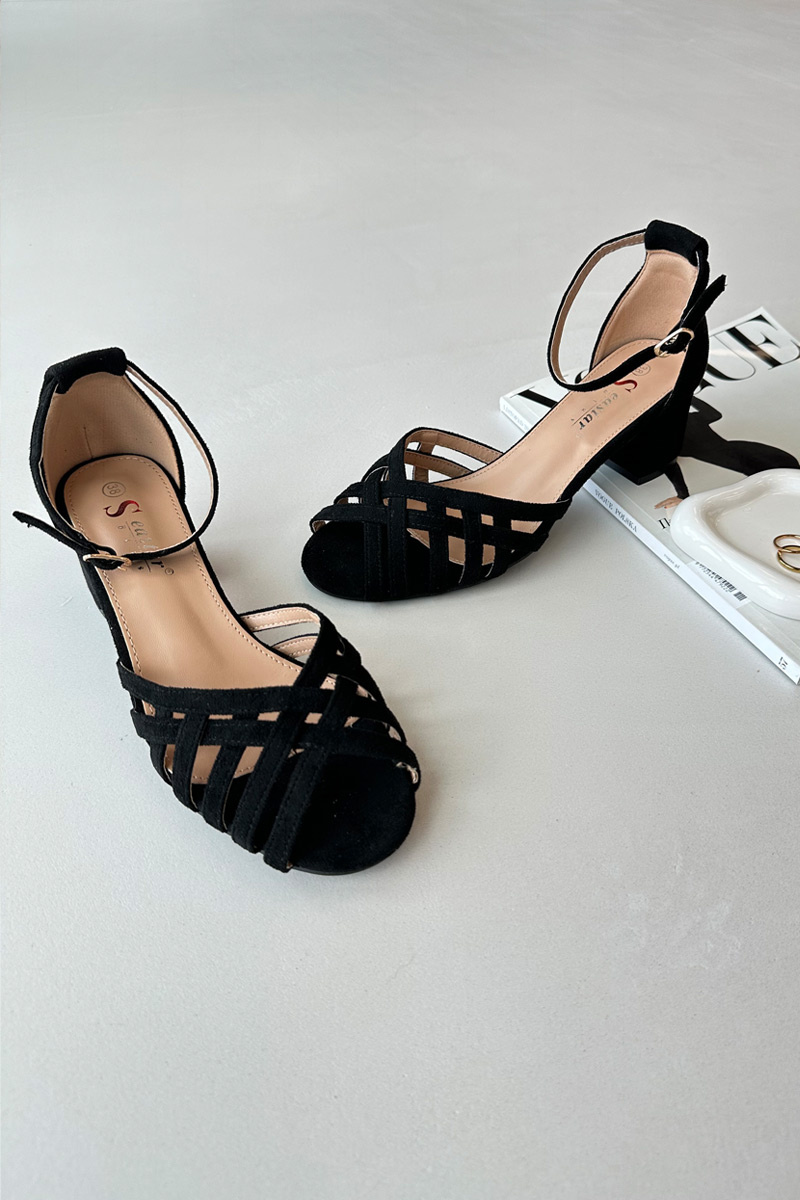 Sandały Damskie Z Eko Zamszu Na Niskim Obcasie Czarne Monsha