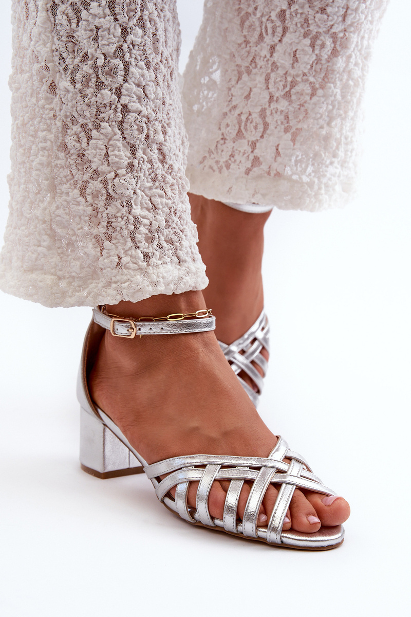Sandały Damskie Z Eko Skóry Na Niskim Obcasie Srebrne Monsha