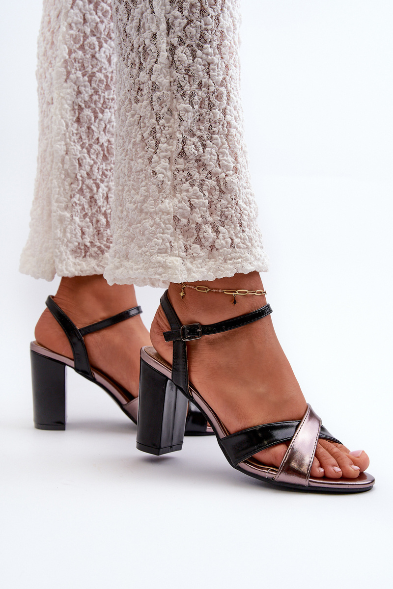 Damskie sandały z eko skóry na obcasie typu słupek to elegancja i komfort w jednym. Z przodu dwa przeplatające się paski. Zapinane na regulowany pasek ze sprzączką, zapewniają idealne dopasowanie i wygodę. Przy wyborze rozmiaru prosimy sugerować się tabelą rozmiarów.