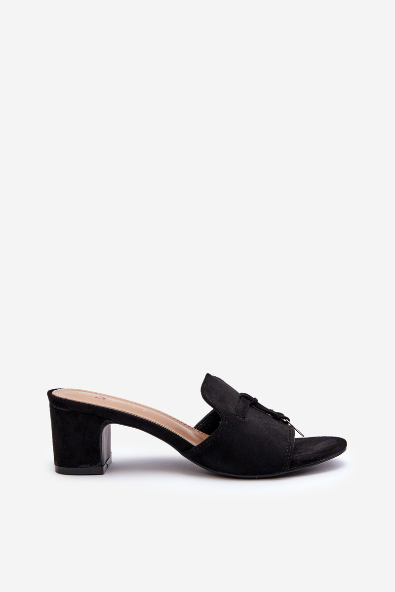 Klapki Damskie Z Eko Zamszu Na Obcasie Czarne Jemenna