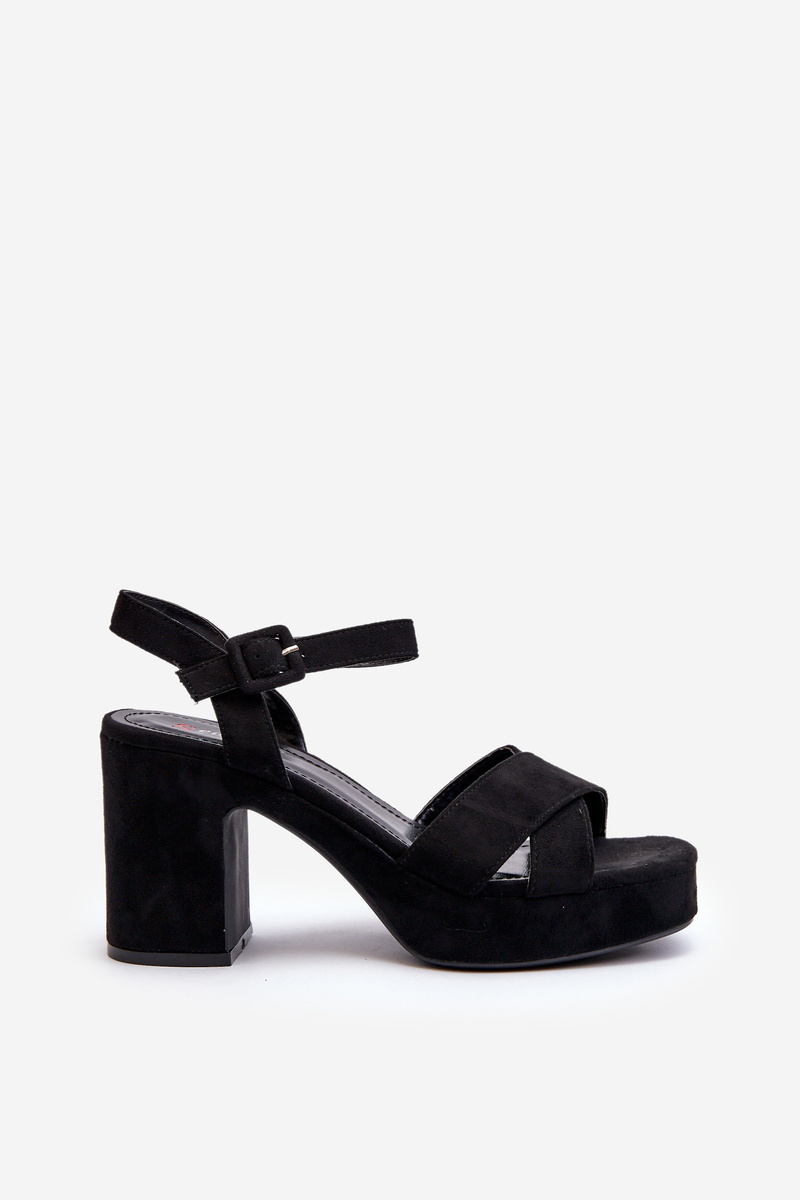Sandały Damskie Z Eko Zamszu Na Słupku I Platformie Czarne Sakane