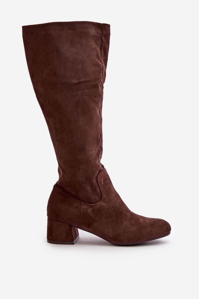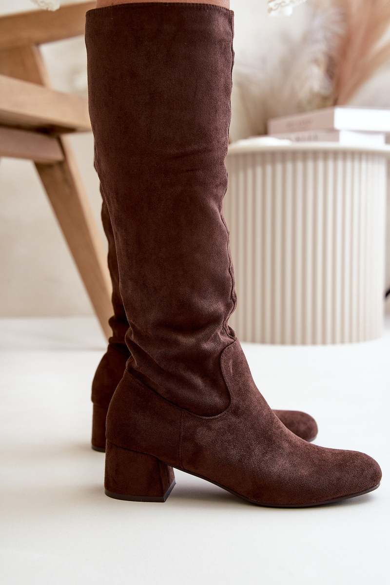 Eko Zamszowe Kozaki Damskie Przed Kolano Na Zamek Brązowe Elitara