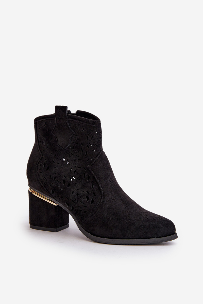 Ażurowe Botki Kowbojki Na Słupku Zapinane Na Zamek Czarne Vosilara