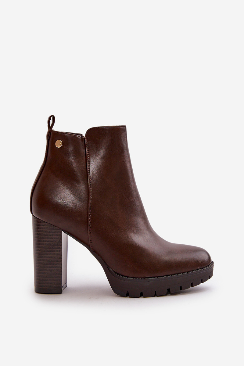 Botki Damskie Ocieplane Na Wysokim Słupku Zapinane Na Zamek Ciemnobrązowe Bioria