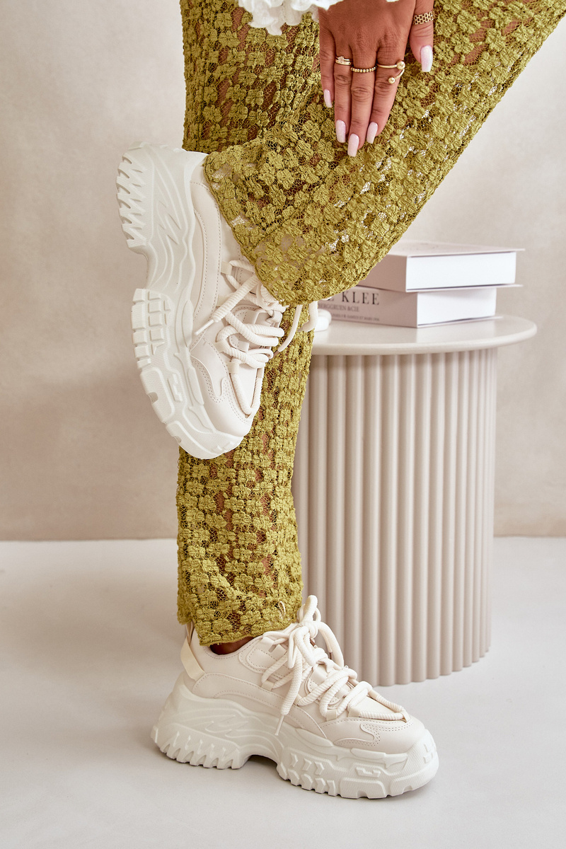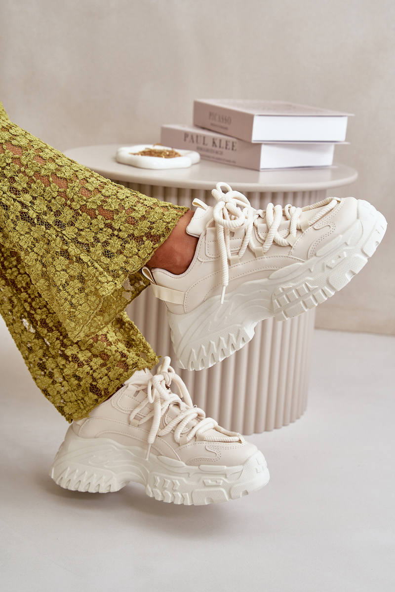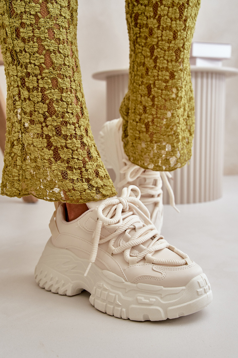 Sneakersy Damskie Na Masywnej Podeszwie Jasnobeżowe Nevela