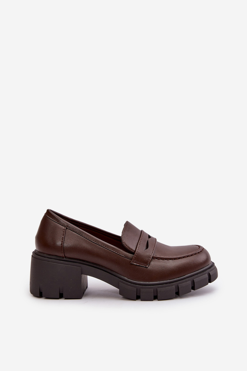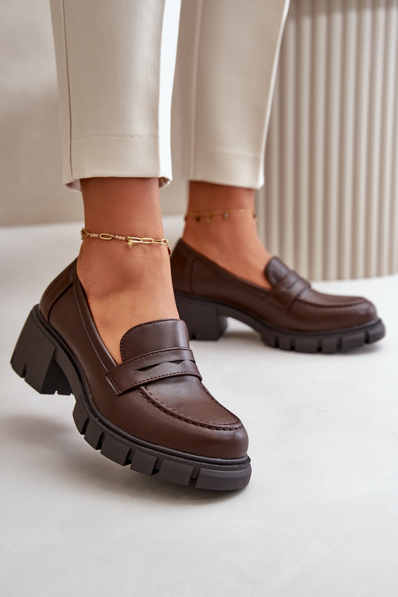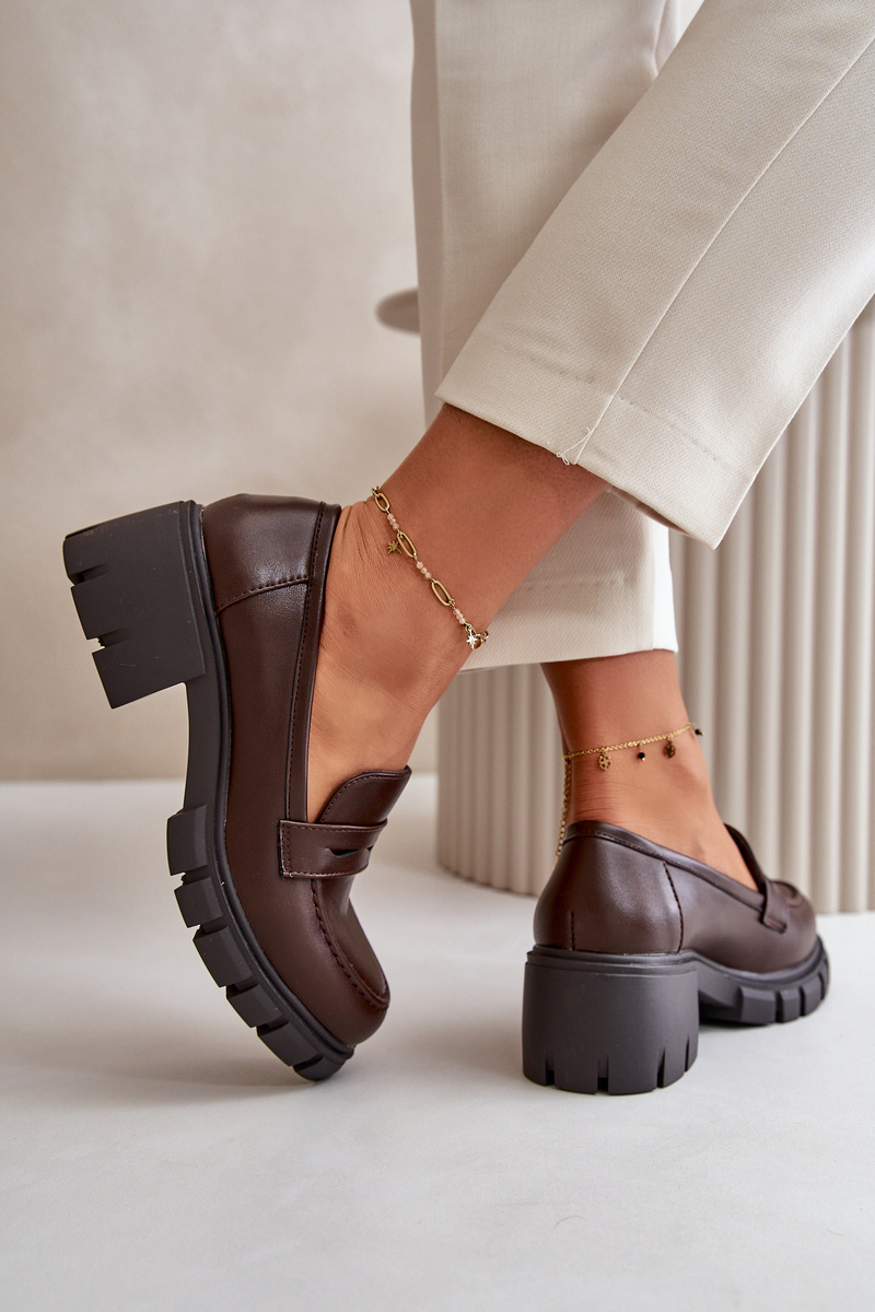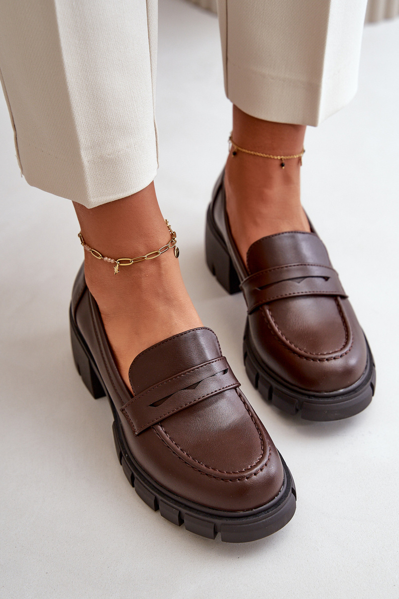 Damskie Półbuty Na Niskim Obcasie Z Eko Skóry Ciemnobrązowe Menloa