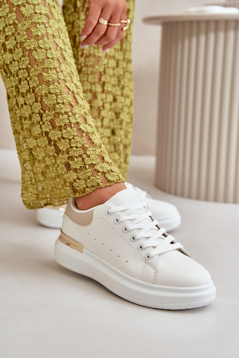 Niskie Trampki Damskie Na Platformie Z Eko Skóry Biało-Beżowe Nevelena
