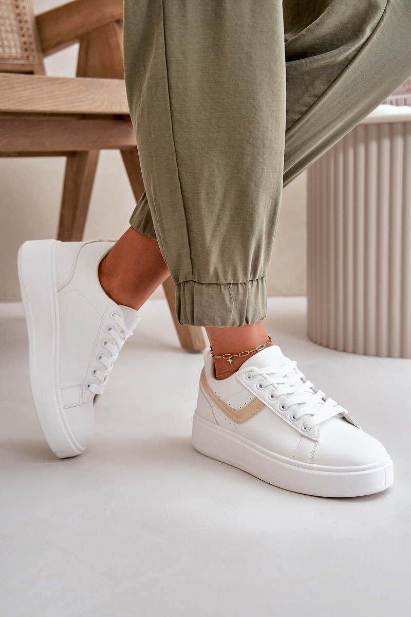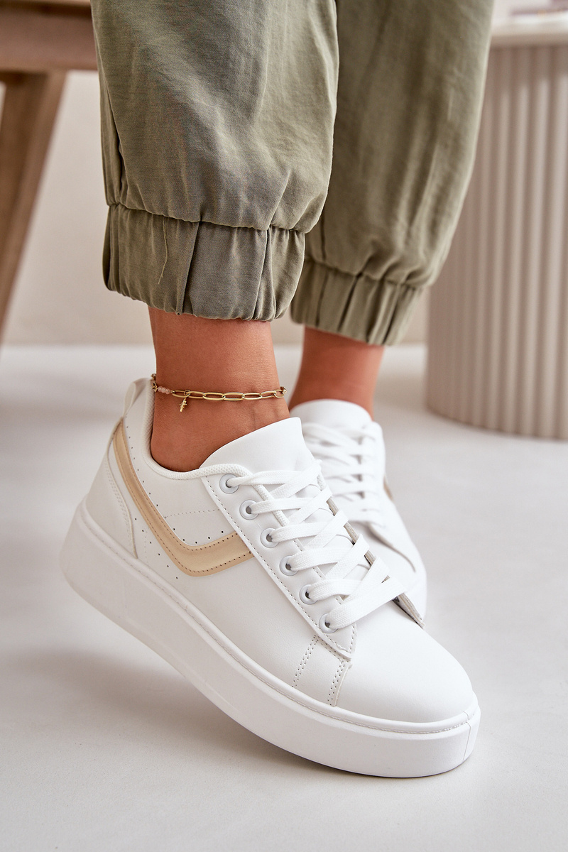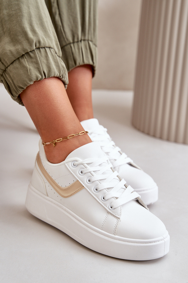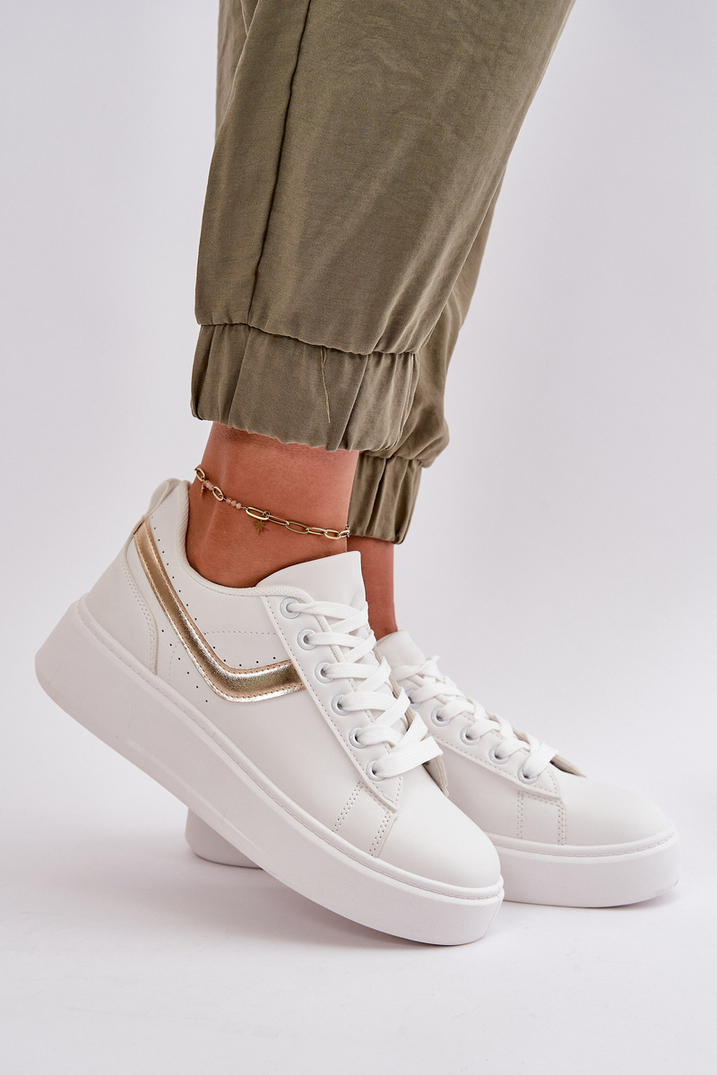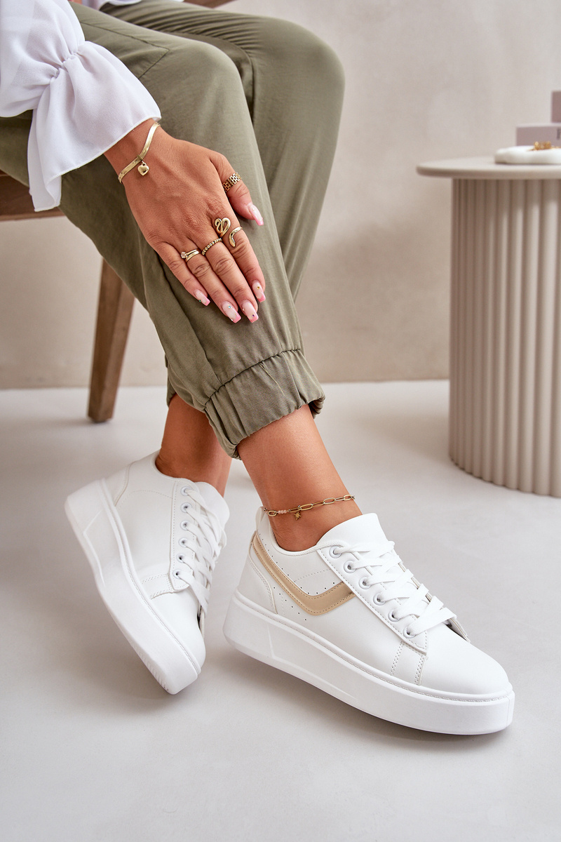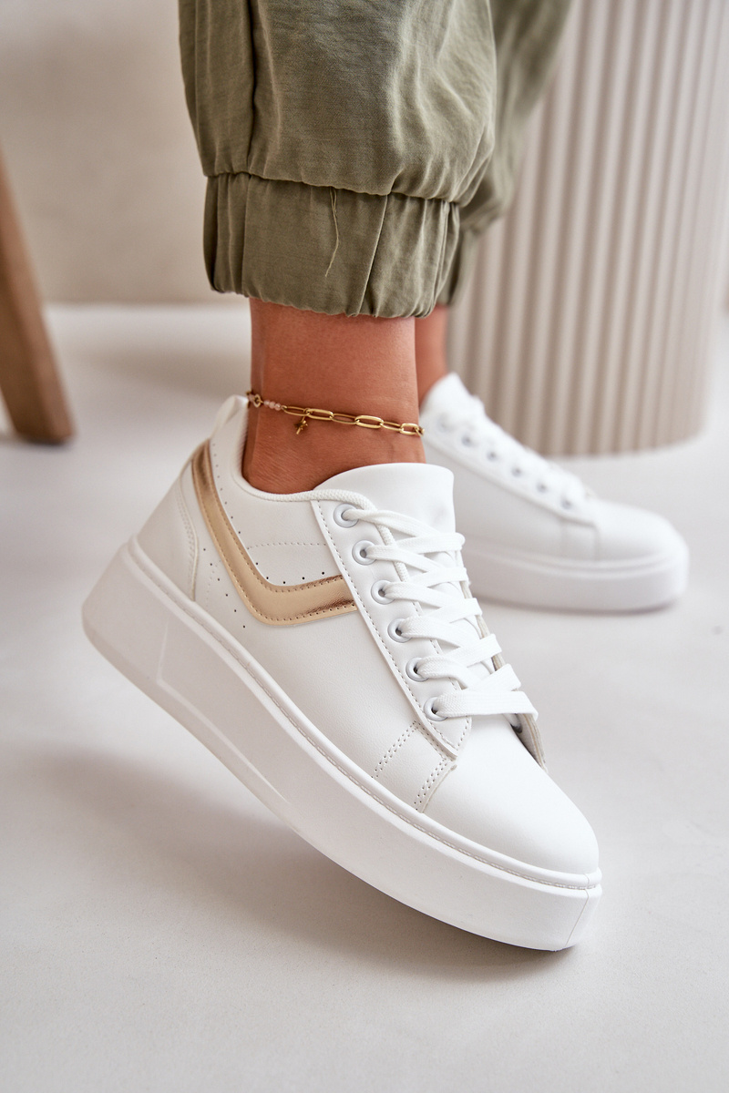 Trampki Sneakersy Damskie Na Platformie Z Eko Skóry Biało-Złote Brennessa