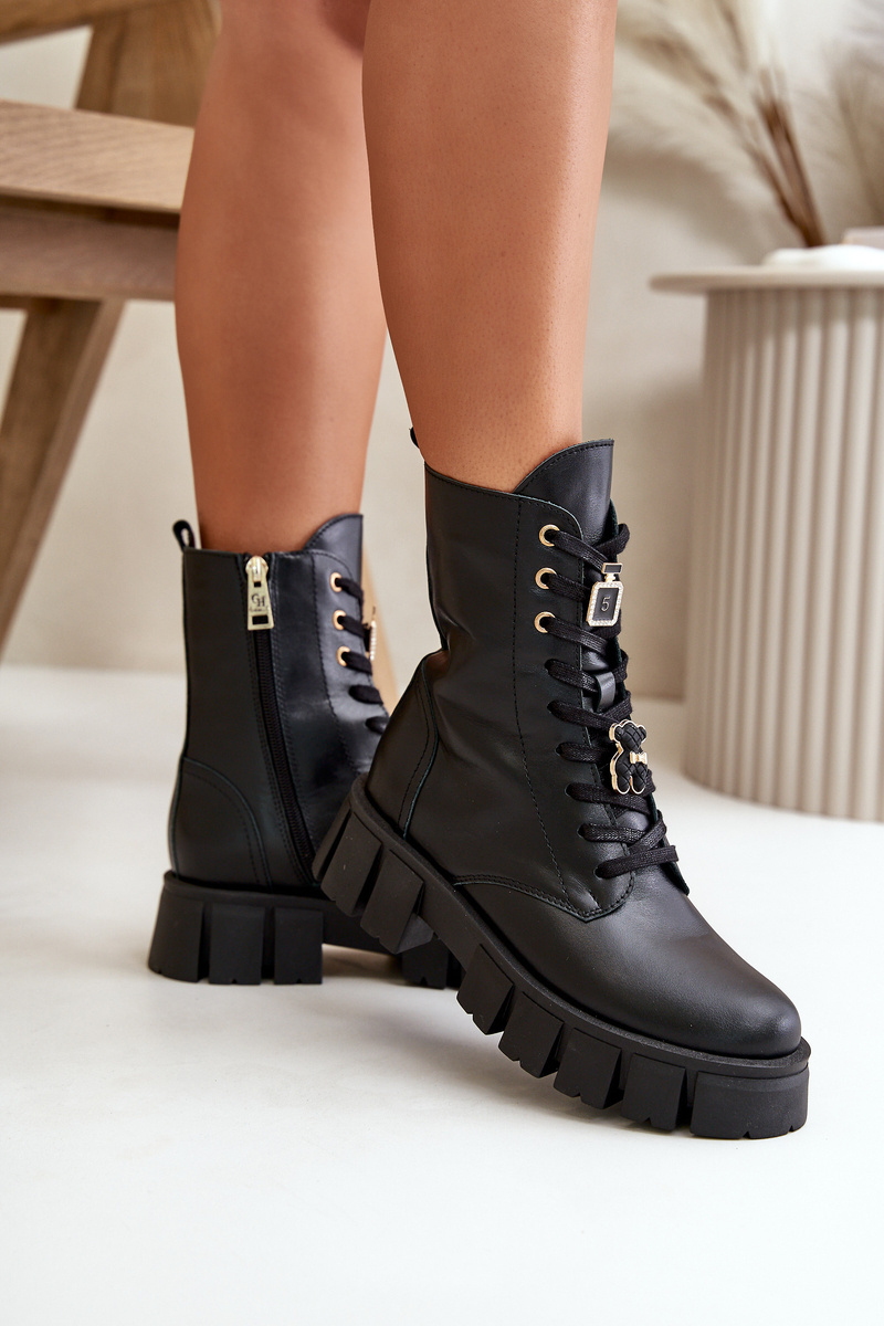 Damskie Skórzane Botki Workery Z Przypinkami CheBello 4247 Czarne