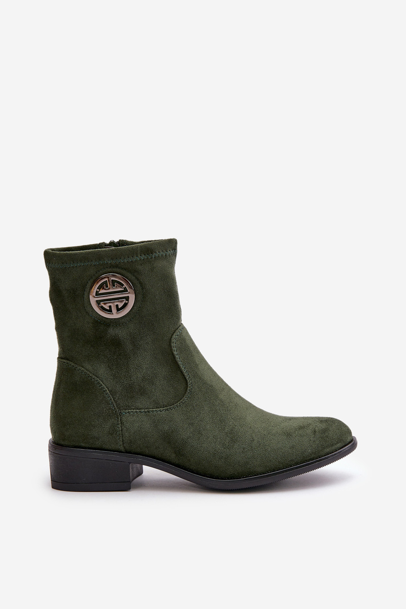 Botki Damskie Zapinane Na Zamek Z Ozdobnym Detalem Eko Zamszowe Zielone Lerioria