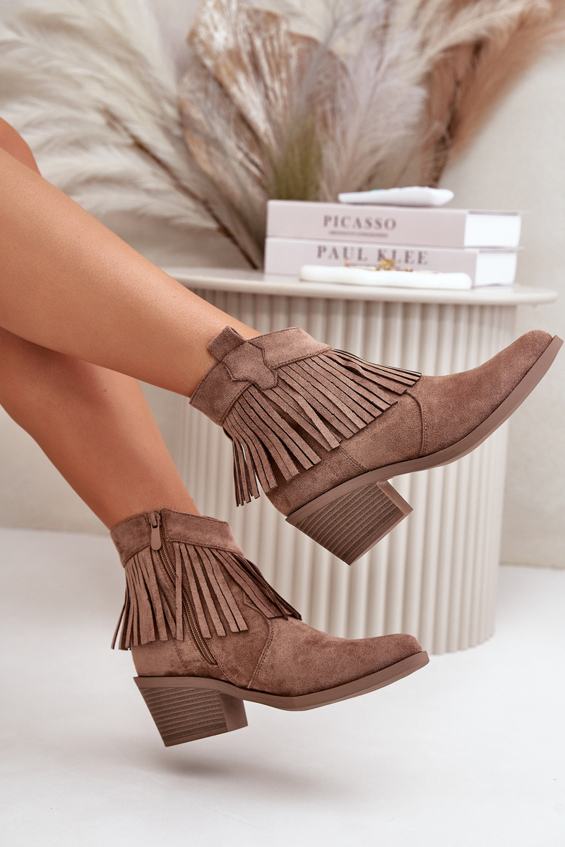 Botki Kowbojki Damskie Na Zamek Eko Zamszowe Brązowe S.Barski HY42-127