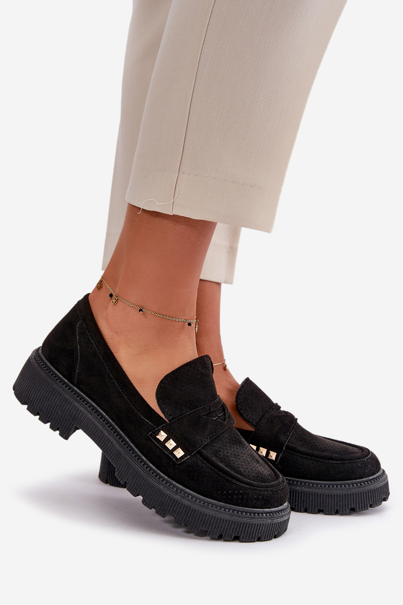 Mokasyny damskie wykonane z eko zamszu. Osadzone na płaskim obcasie i platformie, zapewniają komfort noszenia przez cały dzień. Noski są zaokrąglone, co dodaje im klasycznego wyglądu. Model ten jest nie tylko modny, ale także praktyczny, dzięki ażurowej cholewce, która pozwala stopie oddychać. Te mokasyny świetnie sprawdzą się zarówno w codziennych, jak i bardziej eleganckich stylizacjach! Przy wyborze rozmiaru prosimy sugerować się tabelą rozmiarów.